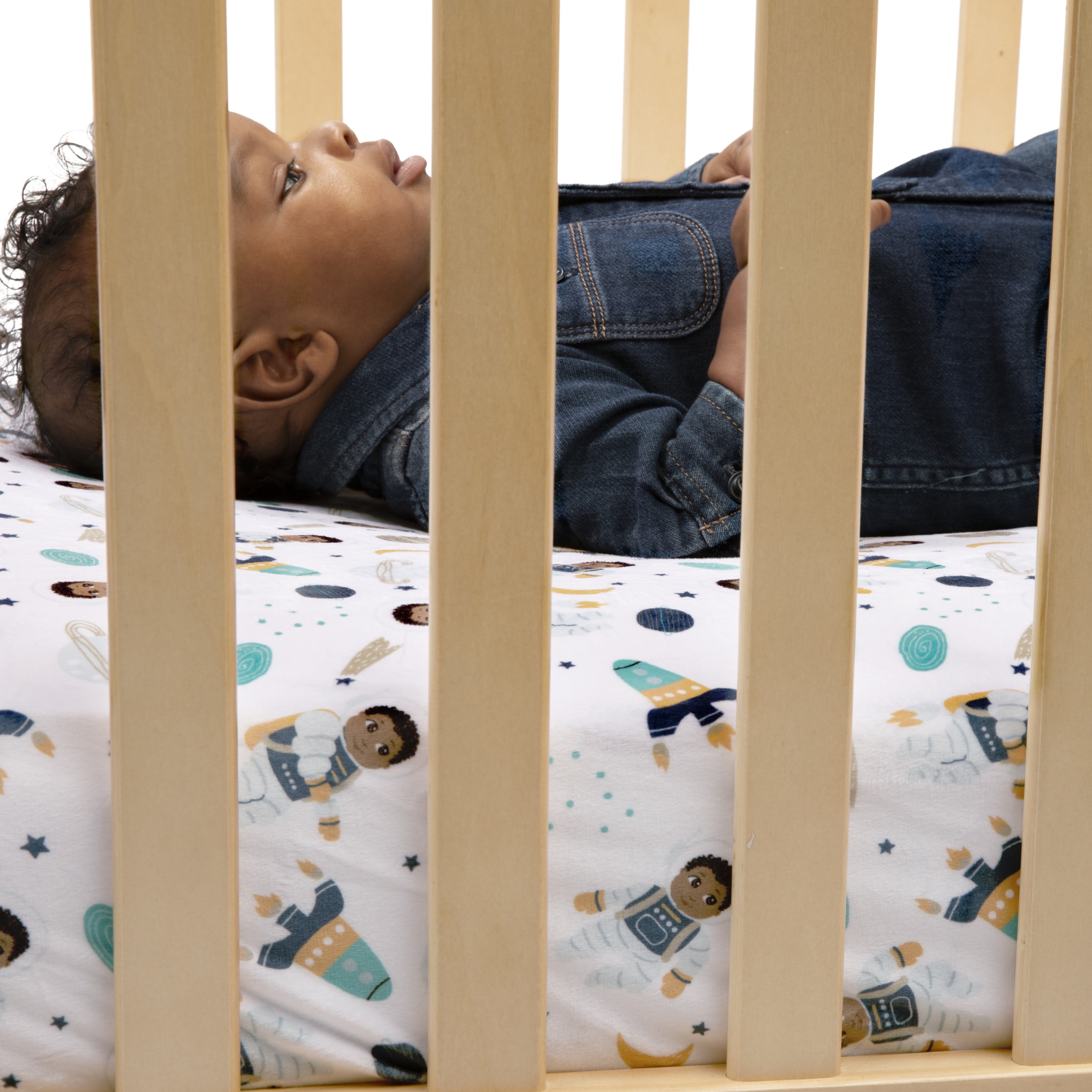 The luxuriously plush material in our adorable crib sheets set baby in their own super soft dreamland. Carefully crafted from easy to clean 100% polyester, our fitted crib sheets feature a full elastic design that makes them easy to secure over the corners of a standard crib mattress.