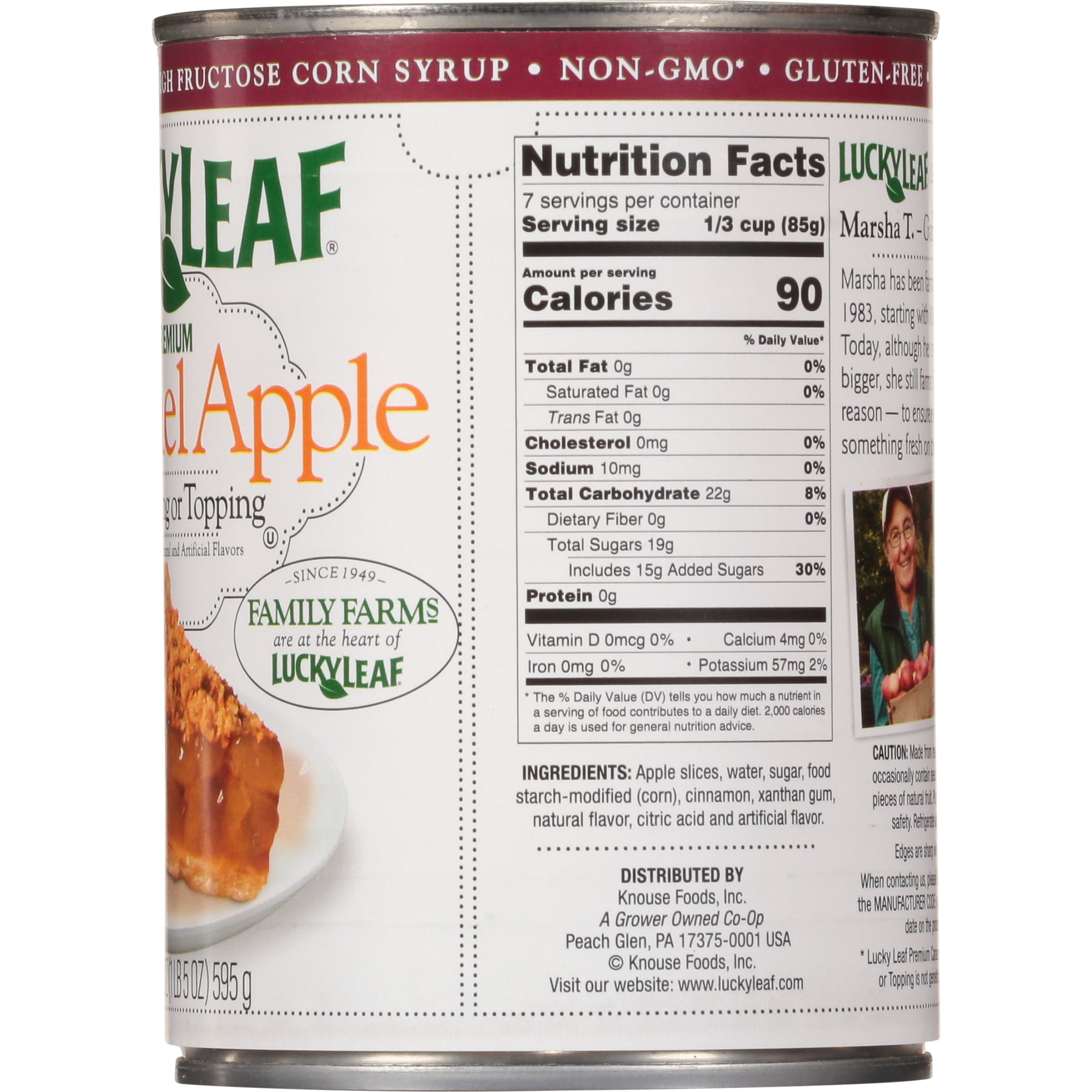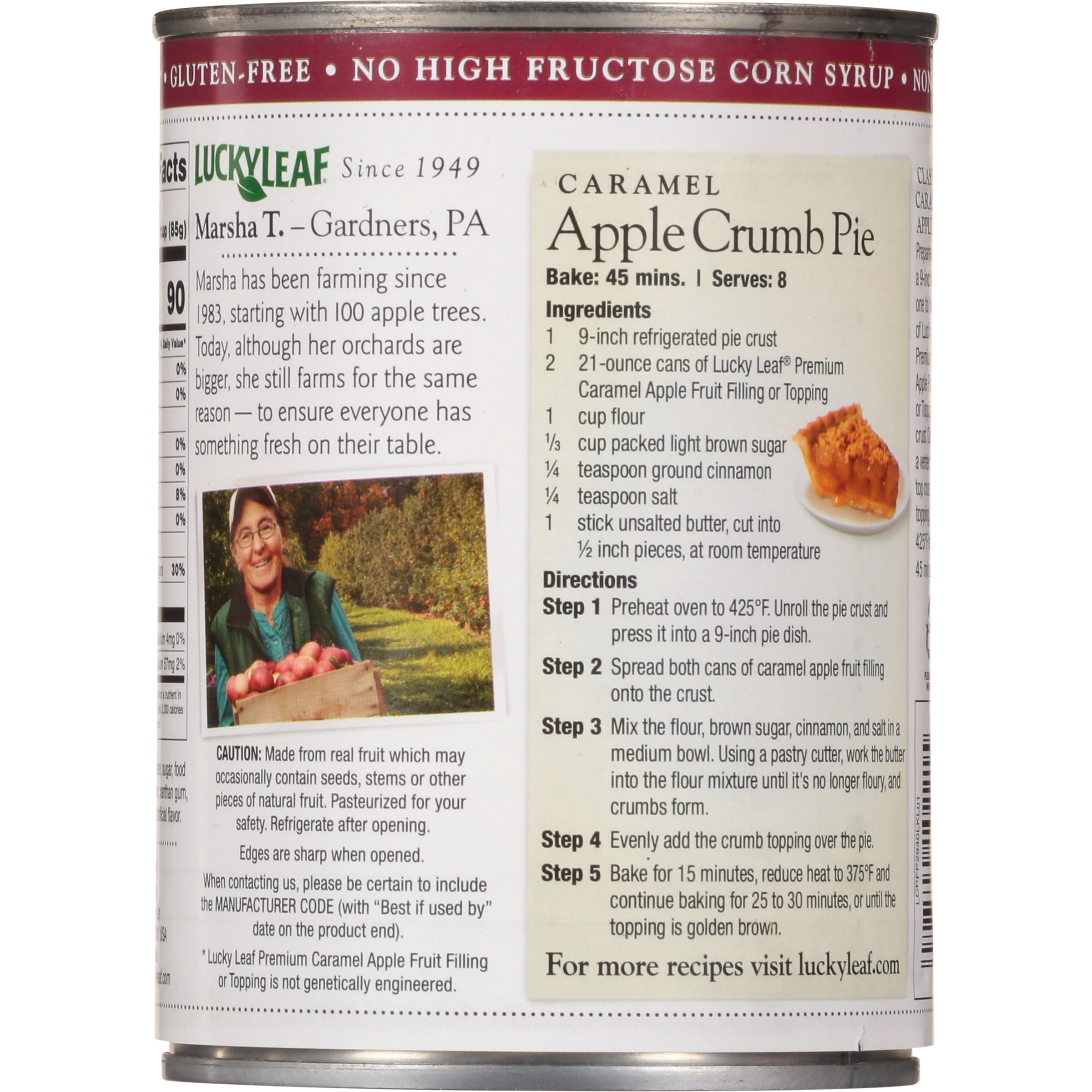 Lucky Leaf Premium Caramel Apple Fruit Filling has NO High Fructose Corn Syrup and is Gluten-Free. Made from the finest blend of ripened fruit, picked at the peak of perfection; it’s the quick and easy way to make homemade desserts the whole family will enjoy. Real fruit filling you can bake into a pie, make into a cobbler, or even just top ice cream.