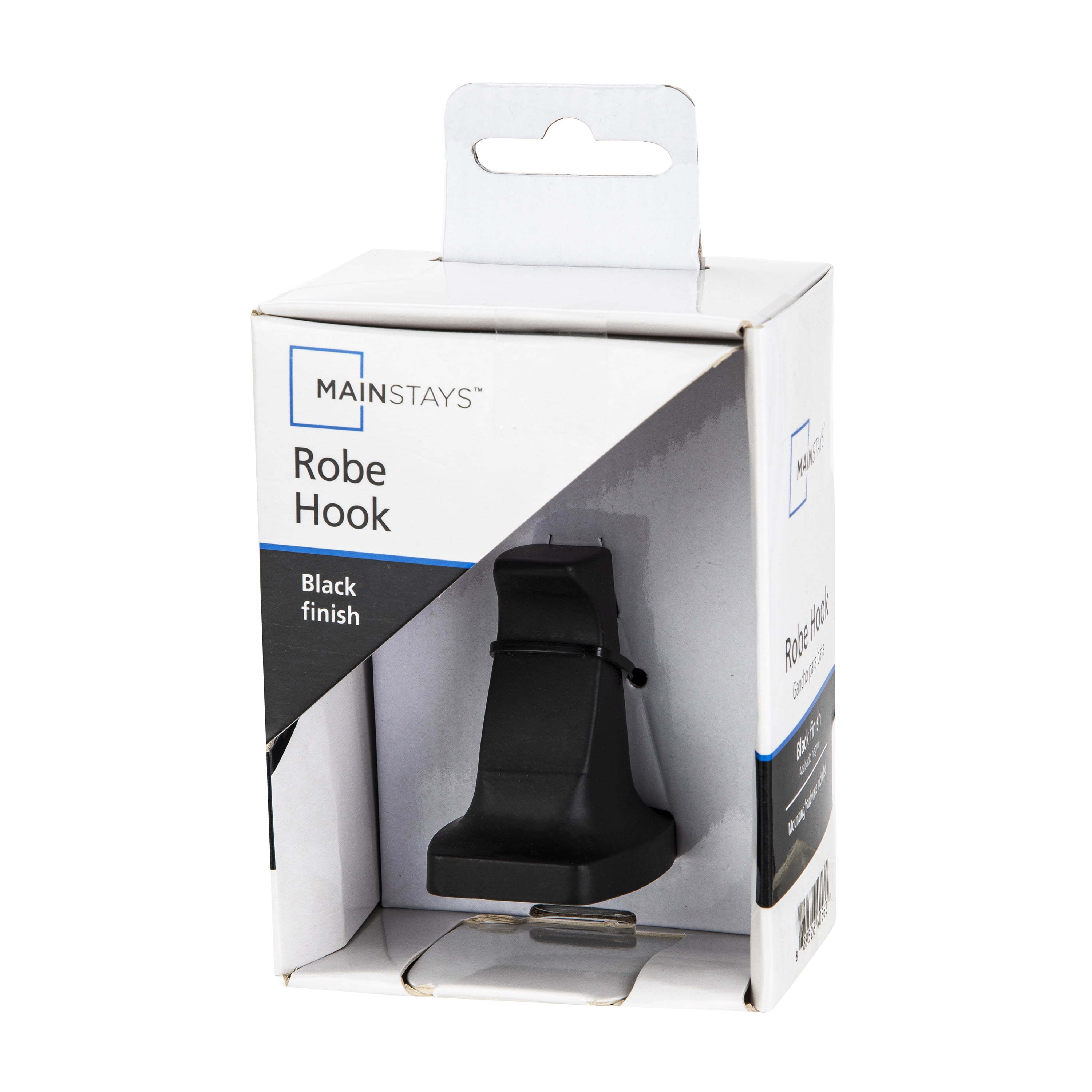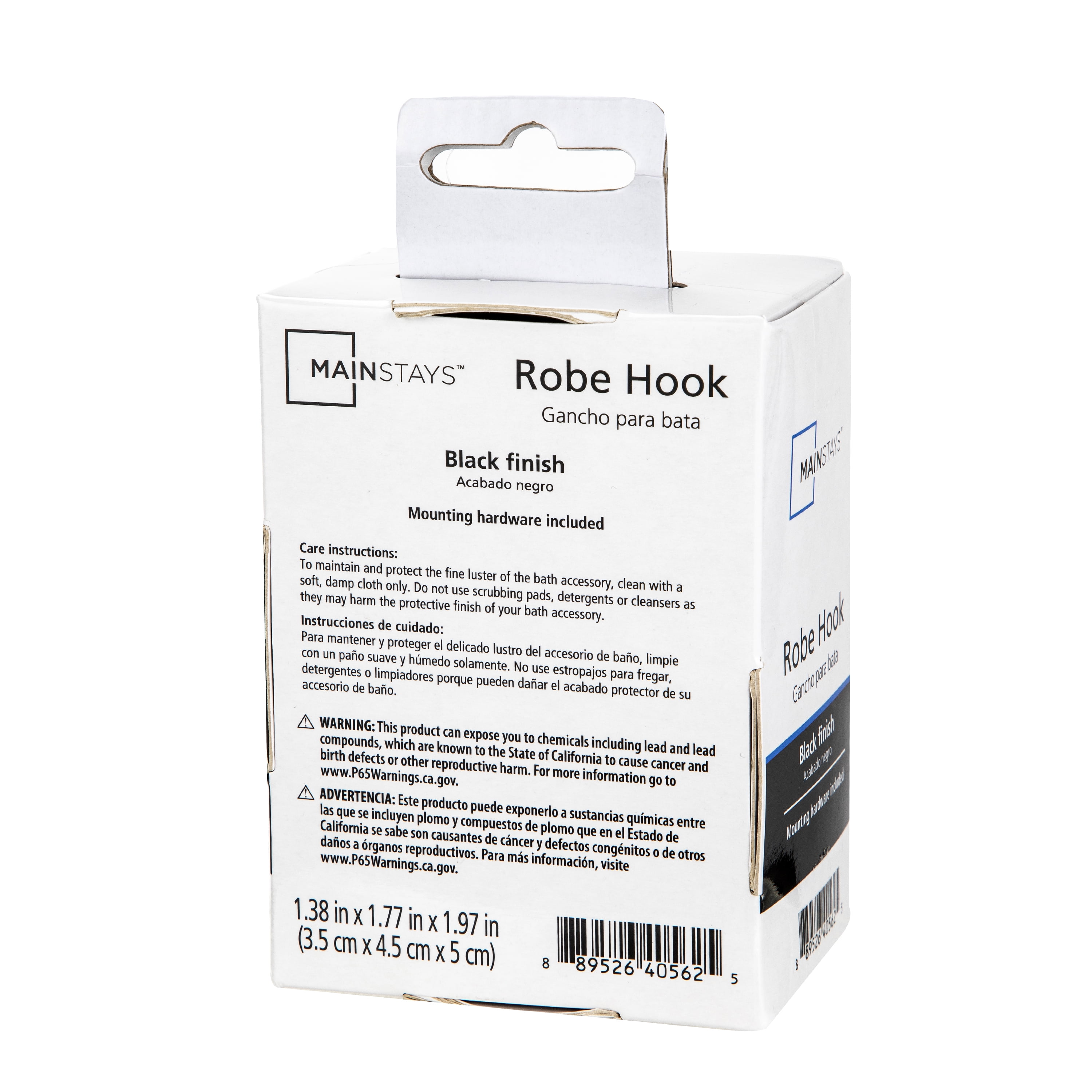 The black Mainstays Square Style Robe Hook is a perfect addition to any bathroom. This Robe Hook is beautifully designed to be functional and stylish. The Robe Hook can be used for robes or towels when space is limited. Hardware and a template guide are included to assist with the Wall Mounting installation. Check out our additional styles and finishes in our full line of Mainstays Bath Hardware products.