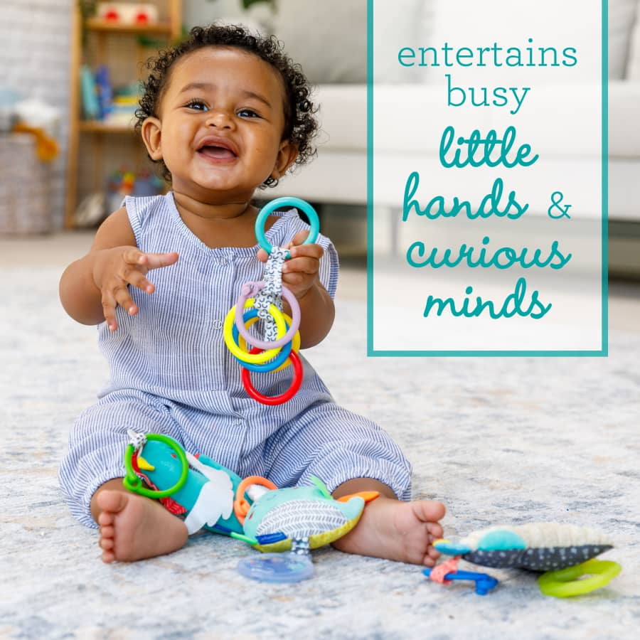 - Baby toy suitable for newborns and teething toddlers; surface wash only