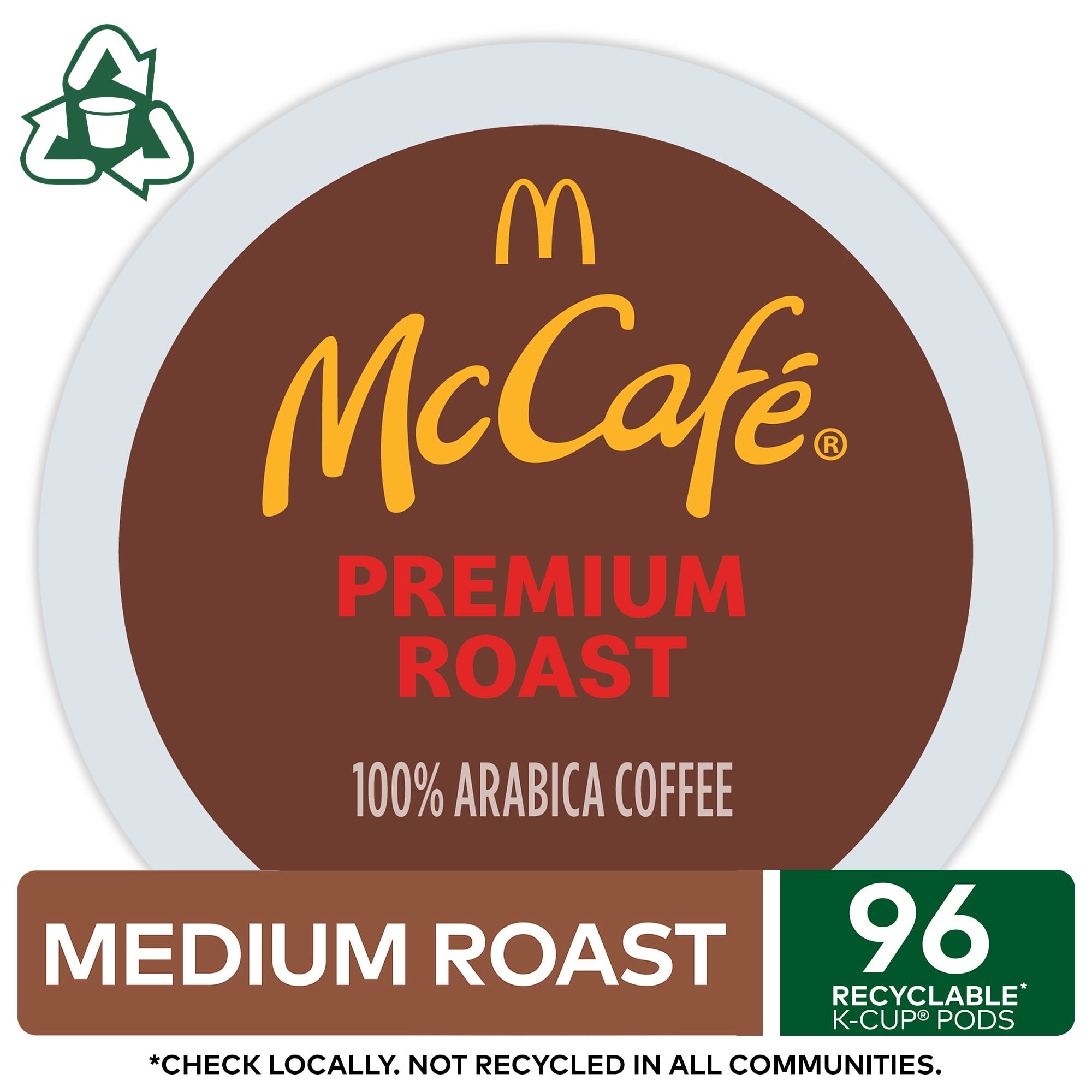 Brew the comfortingly familiar taste of McCafé® Premium Roast and start your day in a surprisingly good way. This medium roast coffee blend is simply satisfying with a rich aroma, smooth body and clean finish. We start with 100% premium Arabica coffee beans, carefully harvested from the rich soils and mountainous regions of the foremost coffee-growing areas of the world. Then we expertly roast them in a temperature-controlled environment to bring out the best taste in every cup, every time. To keep the good going, we use only 100% Responsibly Sourced coffee. That means we support a healthier planet and an improved quality of life for farming communities. Not only are McCafé K-Cup® pods made from recyclable materials, they are recyclable.* Enjoy the freshly brewed flavor you’ve come to expect. And when you’re done, just Peel. Empty. Recycle. Each K-Cup® pod in this package contains medium roast, caffeinated ground coffee from 100% Arabica beans. They have been certified Orthodox Union Kosher. With this purchase, you can be assured you are receiving genuine single serve coffee K-Cup® pods; they have been engineered for quality and are compatible with all Keurig® K-Cup® coffee makers. Simple. Delicious. Brew good by the cupful.*Check locally, not recycled in all communities.