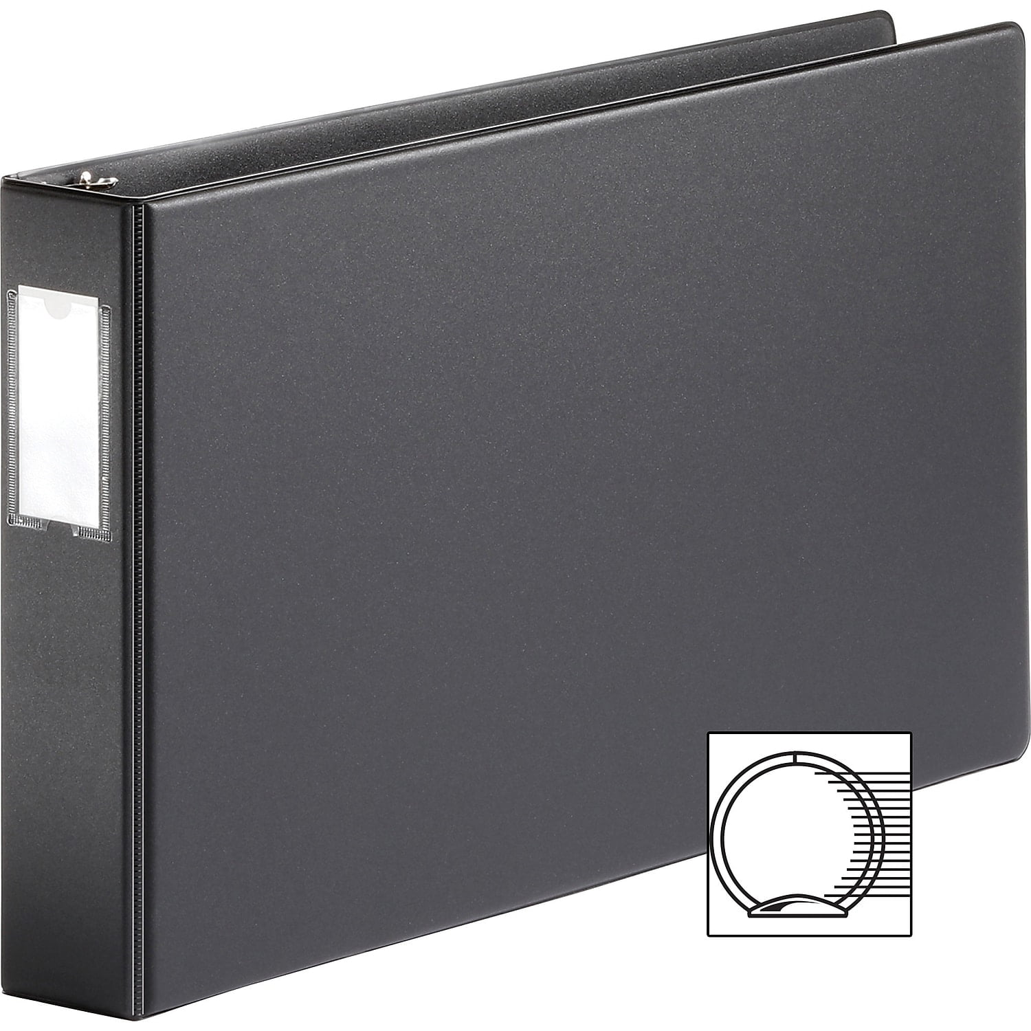 Round-ring binder with label holder is perfect to store tabloid-size documents. Everyday durability is suited for active projects. Use the clear overlay on the spine for easy labeling. Rings are back-mounted so pages lie flat. Round-ring binder with label holder is perfect to store tabloid-size documents. Everyday durability is suited for active projects. Use the clear overlay on the front, back and spine for easy customization. Rings are back-mounted so pages lie flat Sold as 1 Each.
