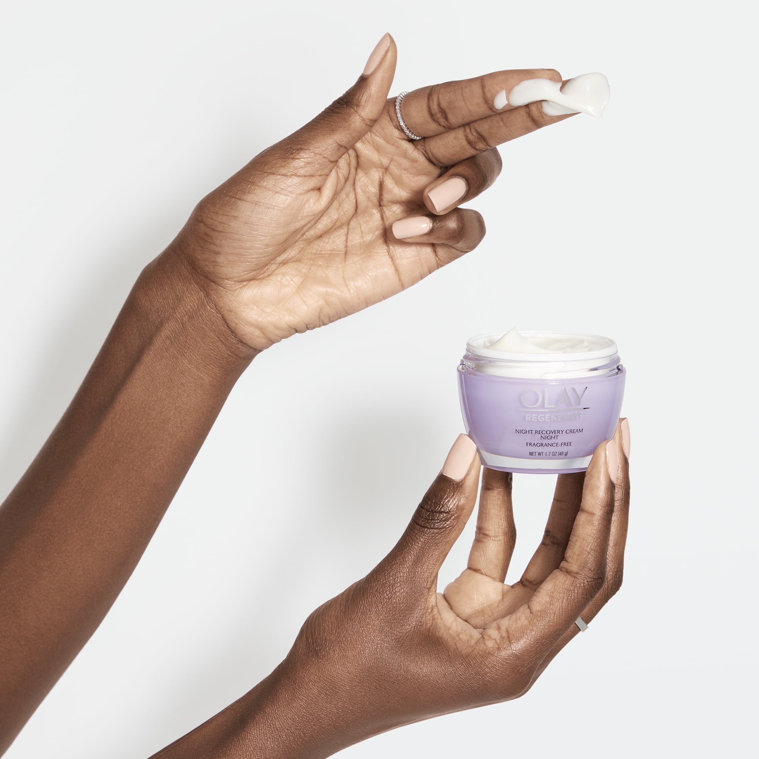 Wake up to intensely moisturized and younger-looking skin with Olay Regenerist Night Recovery Cream, a night cream face moisturizer within Olay’s Advanced Anti-Aging Skin Care Collection. Its intense moisture hydrates throughout the night to reduce the appearance of fine lines and wrinkles. This night moisturizer has a super-hydrating formula with Amino-Peptide Complex, penetrates 10 layers deep to regenerate surface skin cells. Packed with hydration power, it plumps skin with a rich, velvety feel and exfoliates to aid surface cell turnover. The anti-aging moisturizer’s fragrance-free formula is non-greasy and absorbs quickly into the surface of the skin. No fragrance, phthaltes, mineral oil or synthetic dyes. We guarantee you’ll love your OLAY product! If you are not satisfied, we’ll give you your money back via a prepaid card. Must submit within 60 days of purchase. Call toll-free 1-855-845-9797 or visit olay.com/guarantee.