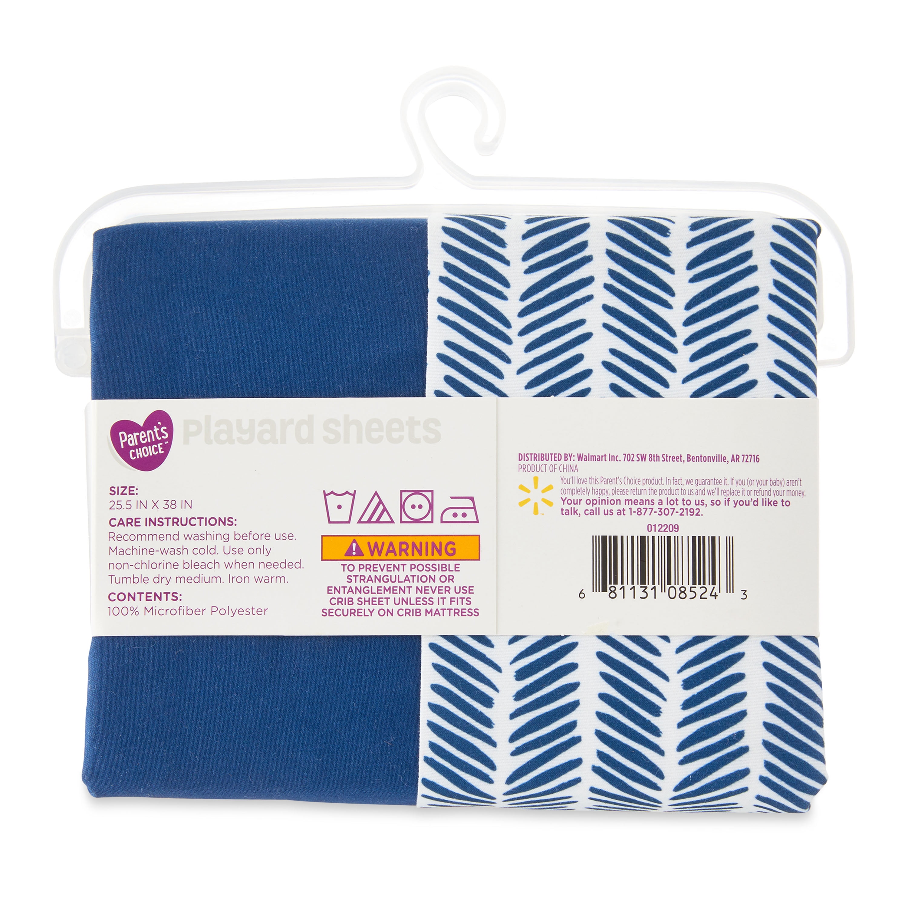 Parent’s Choice 100% Microfiber Polyester Playard Sheets for Baby Boys, Navy Chevron, 2-Pack