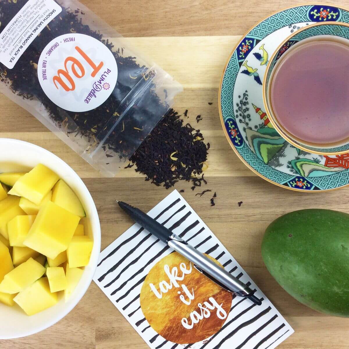 Plum Deluxe Mango Loose Leaf Black Tea "Smooth Sailing Blend" 1 oz. A delicious blend of ingredients, perfect for sharing with friends or enjoying a calming moment cuppa. Made according to our unique in-house recipe. Use 1 tsp per 8 oz of water according to preparation instructions on packet.