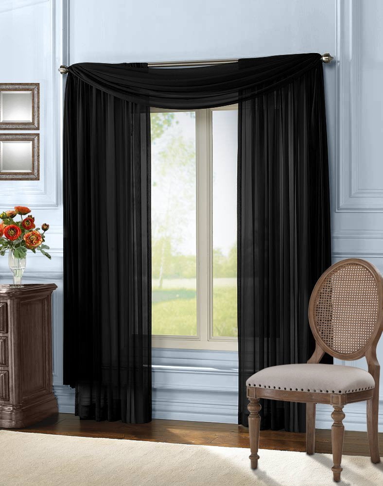 Qutain Linen Solid Viole Sheer Scarf Window Valance Topper 37′ x 216 inch – Black