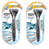 - Razor pack includes one (1) razor handle and two (2) razor blade cartridges