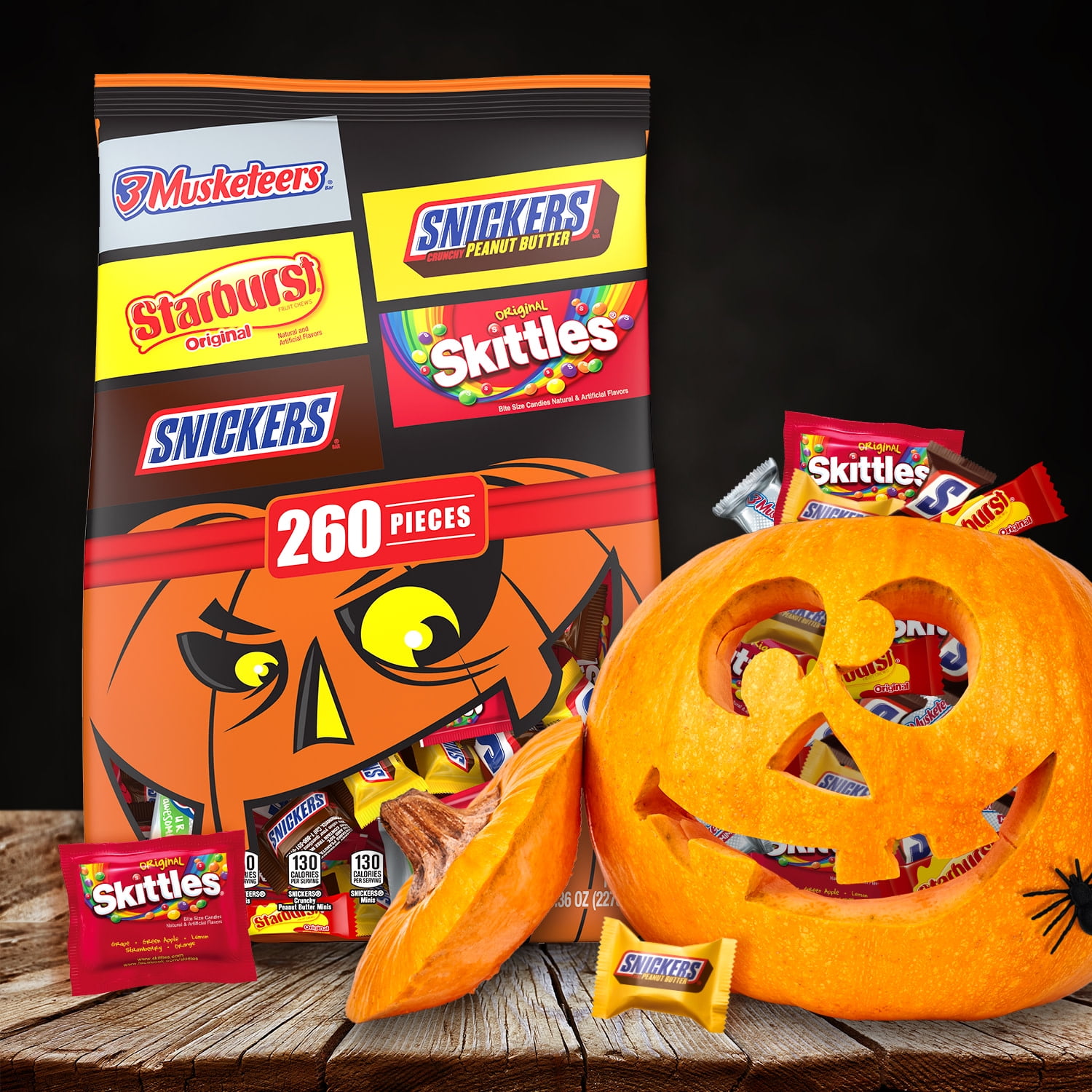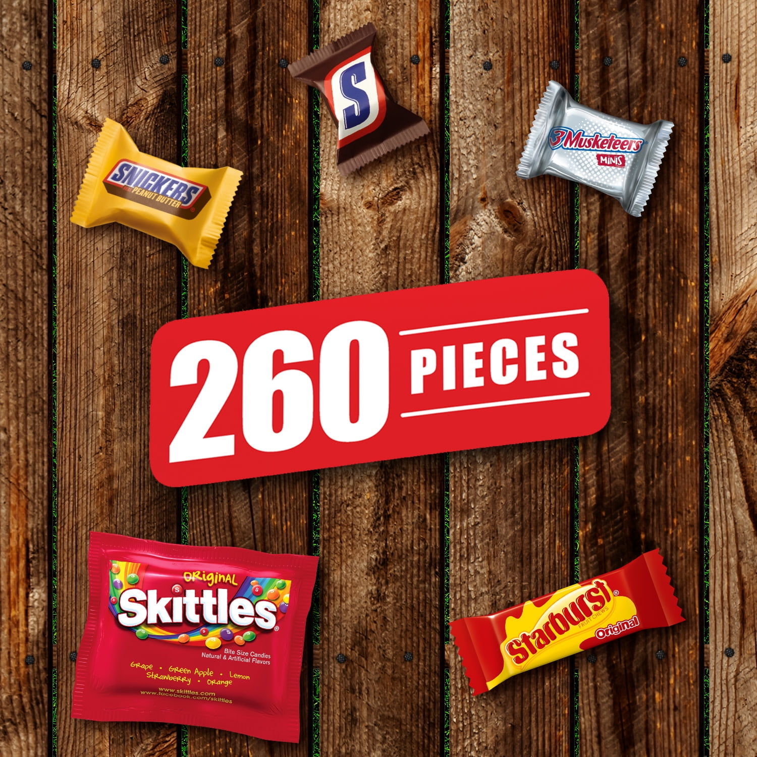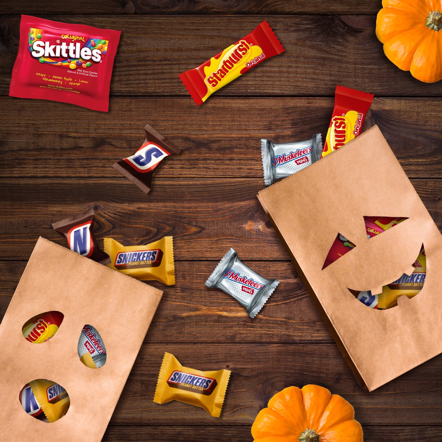 - Features SNICKERS Crunchy Peanut Butter & Original chocolate candy bars, SKITTLES Original chewy candy, STARBURST Original chewy candy & 3 MUSKETEERS chocolate candy