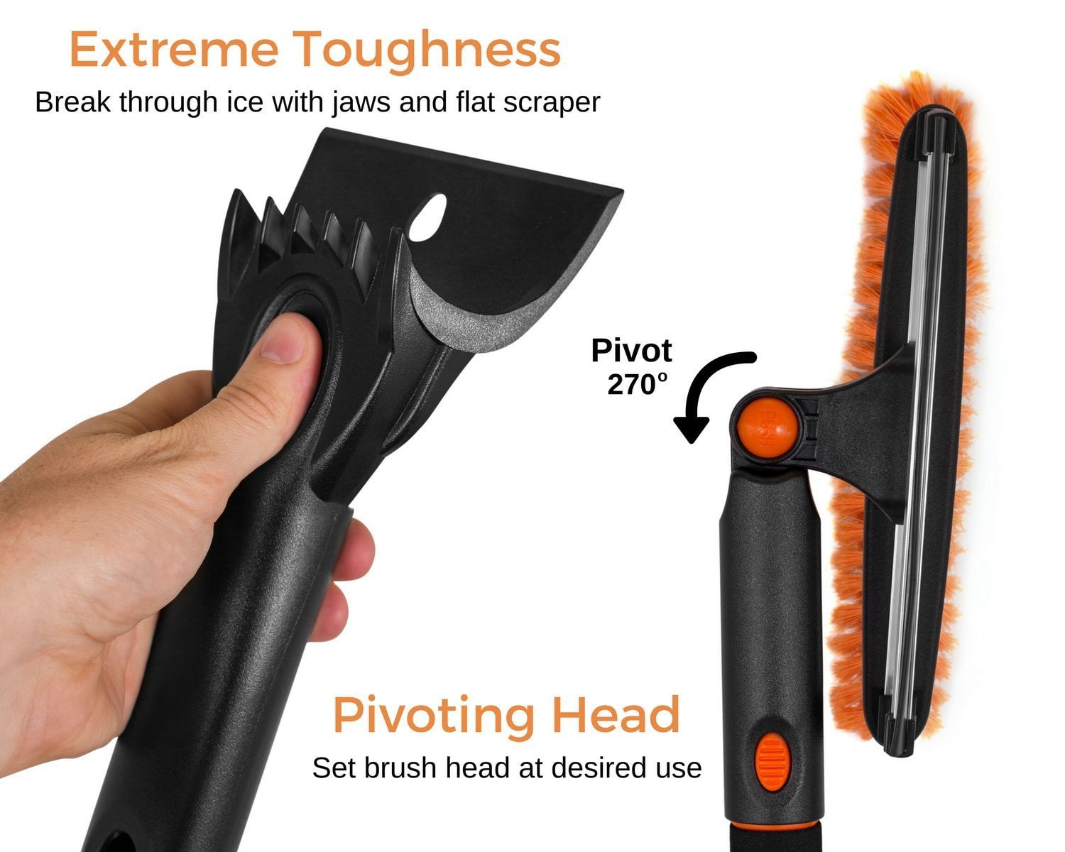 - MULTI-FUNCTIONAL: Double Sided head offers a squeegee opposite the brush head. The ice scraper is removable for faster and easier use. Safe to use on cars