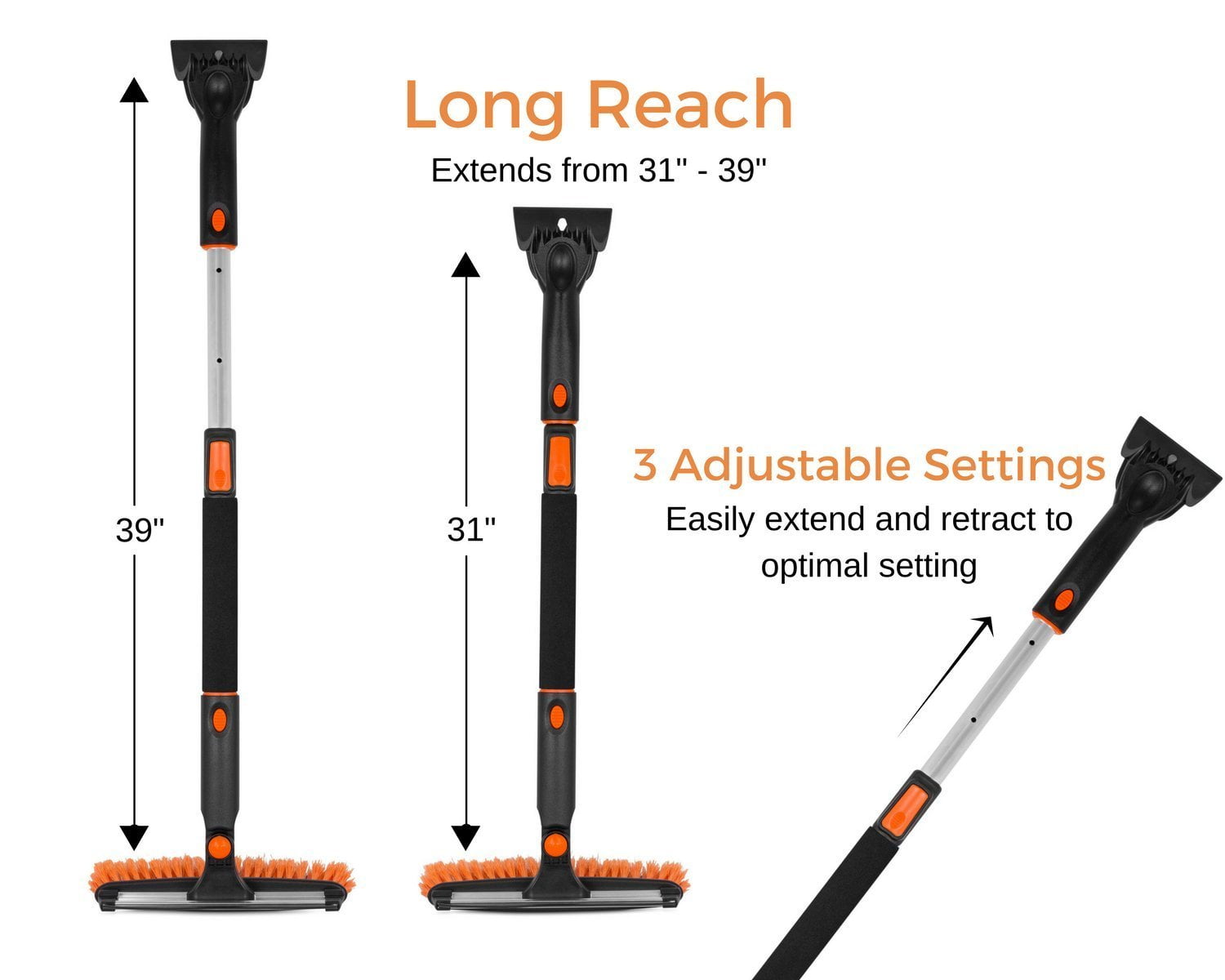 - REACHES TOUGH SPOTS EASILY: extends up to 39” making the hard to reach pockets of snow reachable.