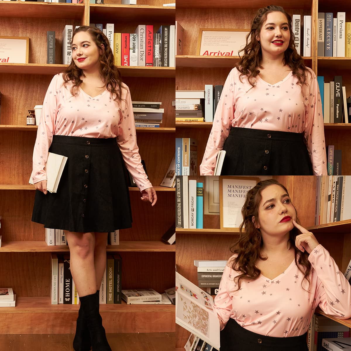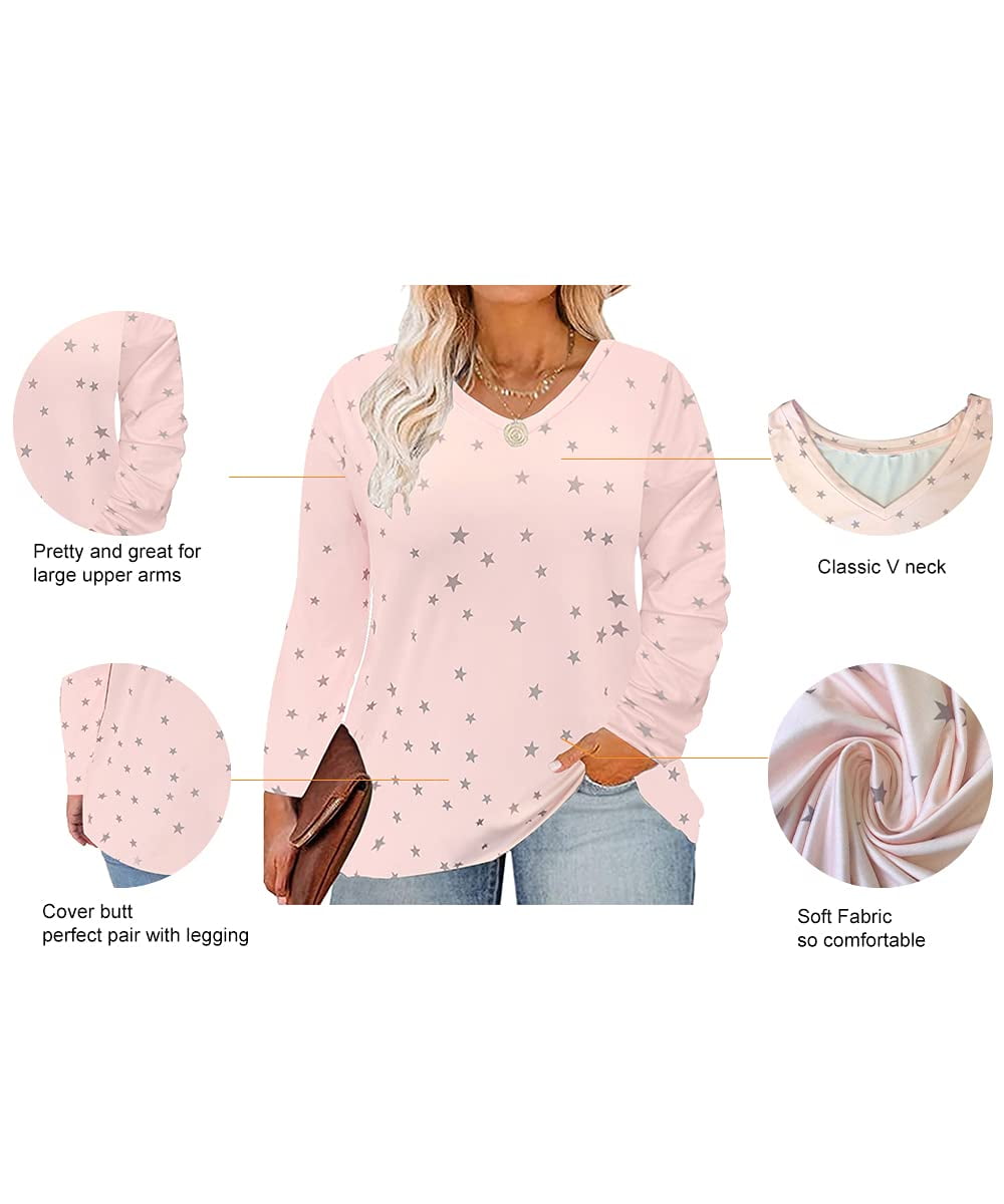 Plus size tops for women long sleeve, XL-5XL, multiple sizes to choose from. The star pink shirt is eye-catching. Excellent comfort and lightweight, oversize design, suitable for spring, fall and winter. Soft and comfortable fabric with stretch, it’s great for work or casual wear, paired with jeans, jackets, long skirts, flats and boots, and assorted sweater chains. It’s perfect to show off your figure.