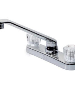 8 in centers. Dual acrylic round handles, ABS construction, plastic waterways, washerless cartridge, 1/2-14 NPSM inlet. IAMPO & NSF certified. Carded.8" centers. Dual acrylic round handles ABS construction plastic waterways washerless cartridge 1/2" 14NPSM inlet. IAMPO & NSF certified. Carded.nullnullTWO HANDLE – NON-METALLIC LESS SPRAYER Max Flow Rate: 1.8 GPM @ 60 PSI Finish=Chrome