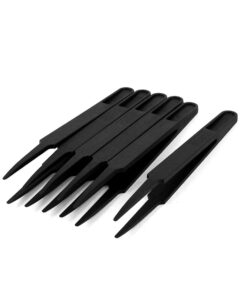 Tweezers & Nail Clipper 5 Piece Set – Professional Carbon Steel Slanted Tip and Pointed, Great Precision Tweezers with Tool Pouch (Black)(5-Pack)