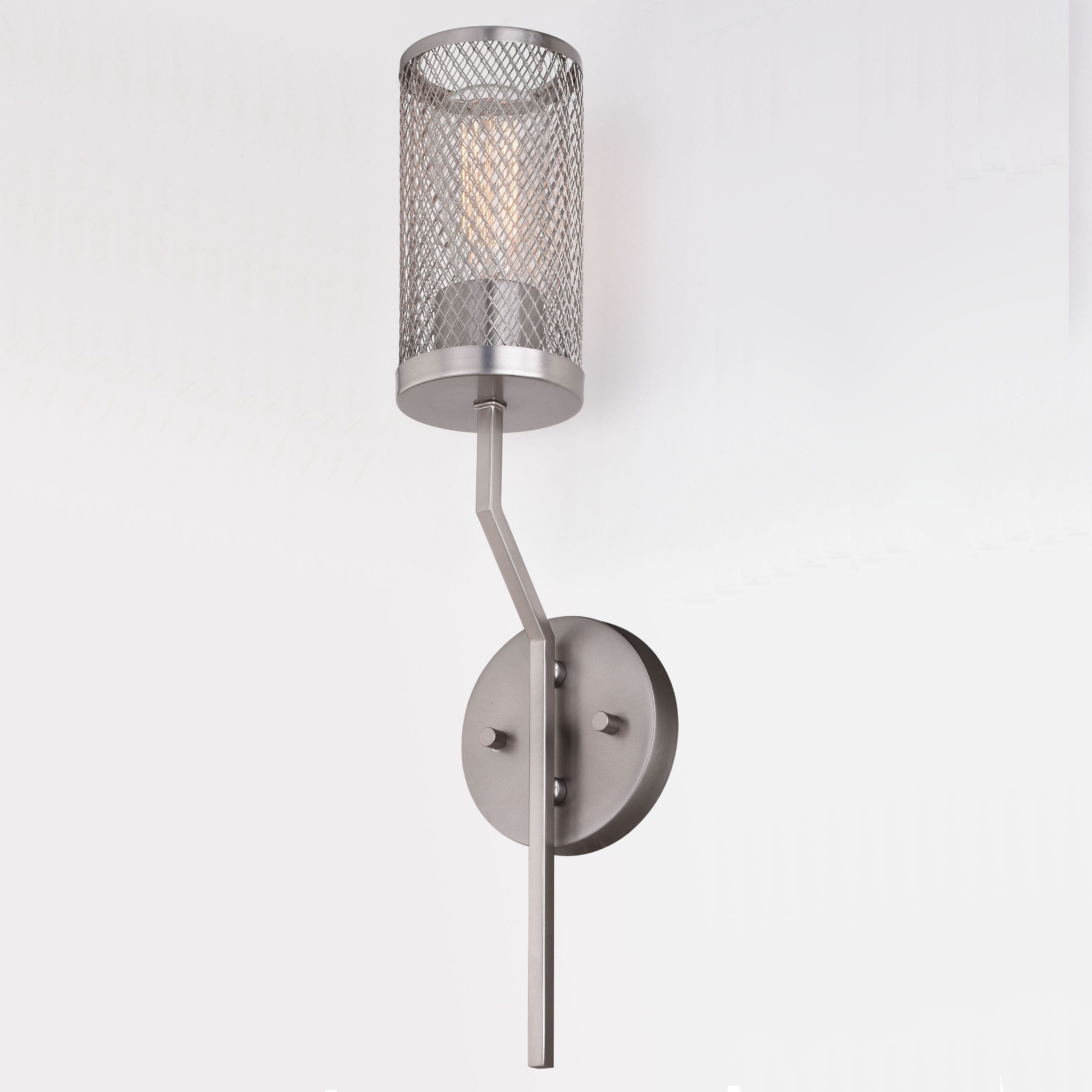 - Antique pewter metal mesh provides bright illumination and an urban loft feel