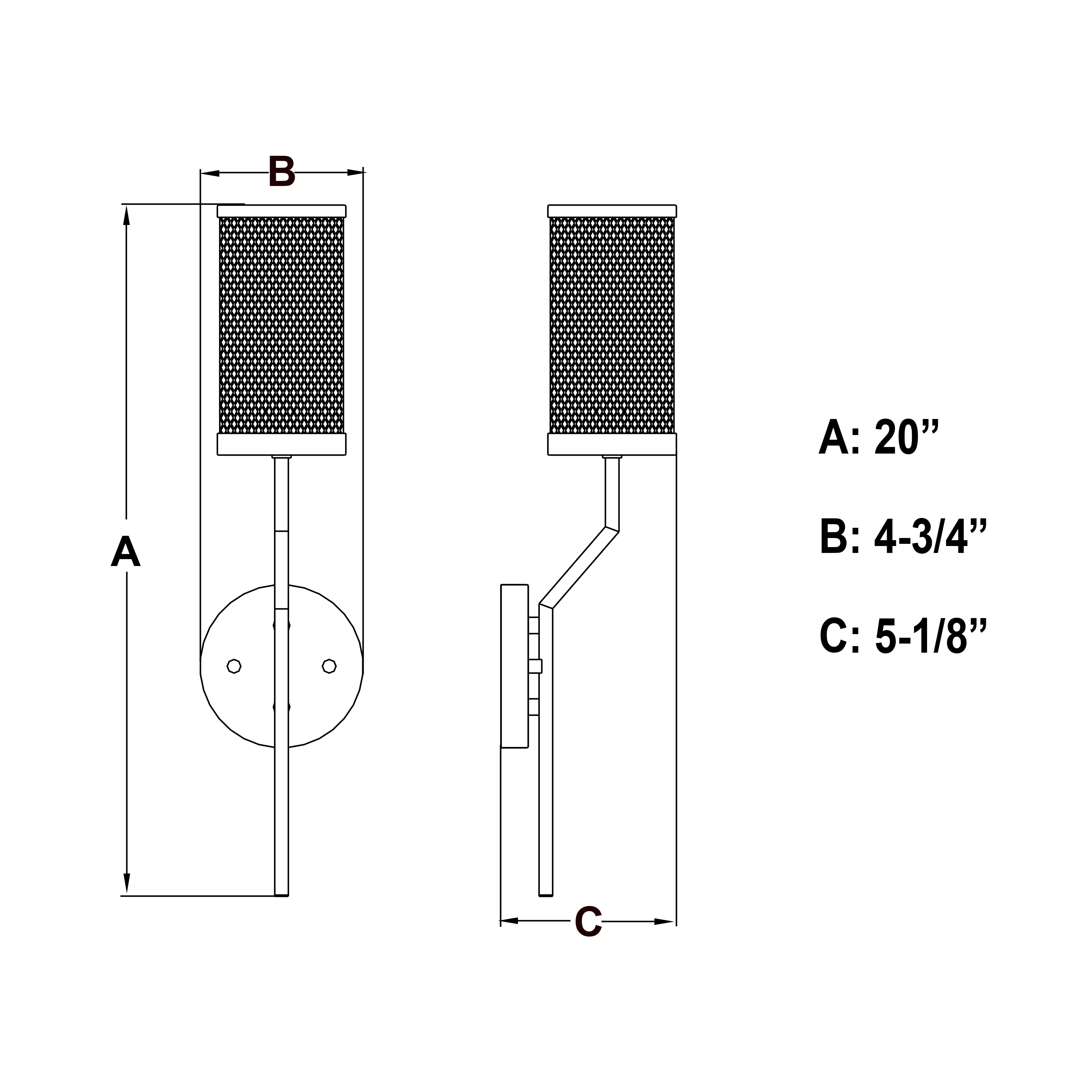 - 4.75-in. W x 20-in. H x 5-in. D