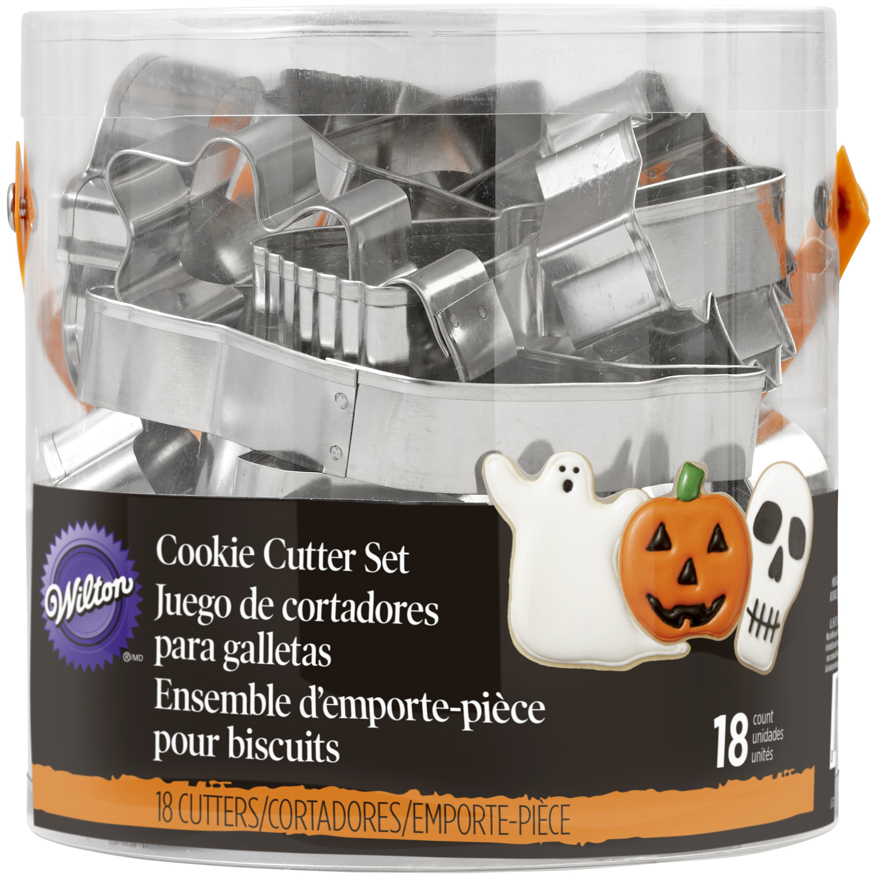 Make up some spooky sweets for Halloween with these shaped metal cookie cutters. Set includes: witch hat, bone, ghost, web, apple, spider, skull, cauldron, vampire teeth, coffin, tombstone, broom, oak leaf, cat, pumpkin, bat, candy corn and maple leaf.