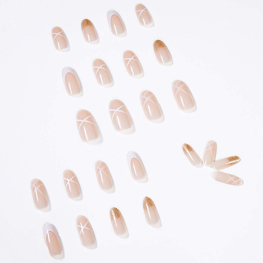 Almond Press on Nails Medium Length with Designed Fake Salon Pink Glitter Full Cover Acrylic False Tips for Women and Girls, 24 Pieces