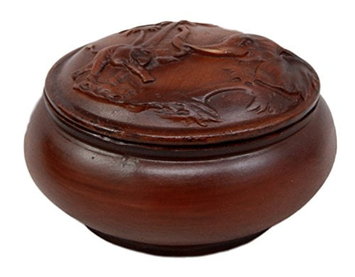 Faux Wood Safari Elephant With Calf Rounded Jewelry Trinket Decor Box 4.25’D