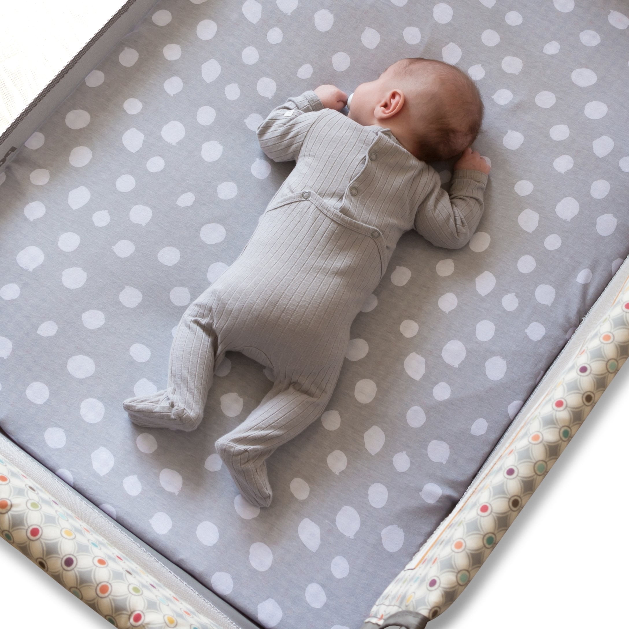 Pack N Play Portable Crib Sheet Set 100% Jersey Cotton 2 Pack – Grey and White Abstract Stripes and Dots