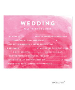 Fill-In-The-Blank – Newlyweds Pink Watercolor Wedding Cards Guest Book Alternative, 20-Pack