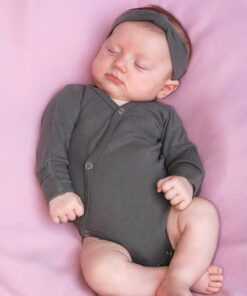 L’ovedbaby Unisex-Baby Organic Cotton Kimono Long Sleeve Bodysuit, Gray, 3/6 Months