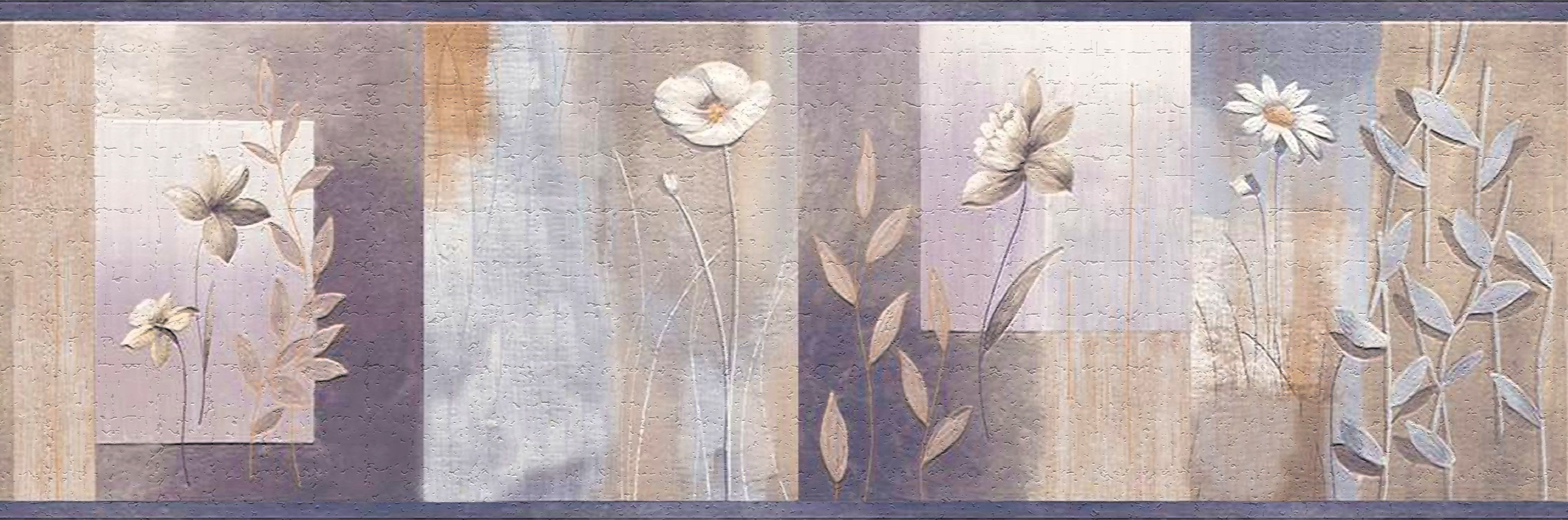 Dundee Deco Peel and Stick Self Adhesive Wallpaper Border – Geometric Silver, Purple, Violet Flowers, 15 ft x 7 in