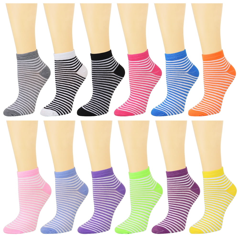 12 Pairs Assorted Colors Women’s Ankle Socks Size 9-11 Striped