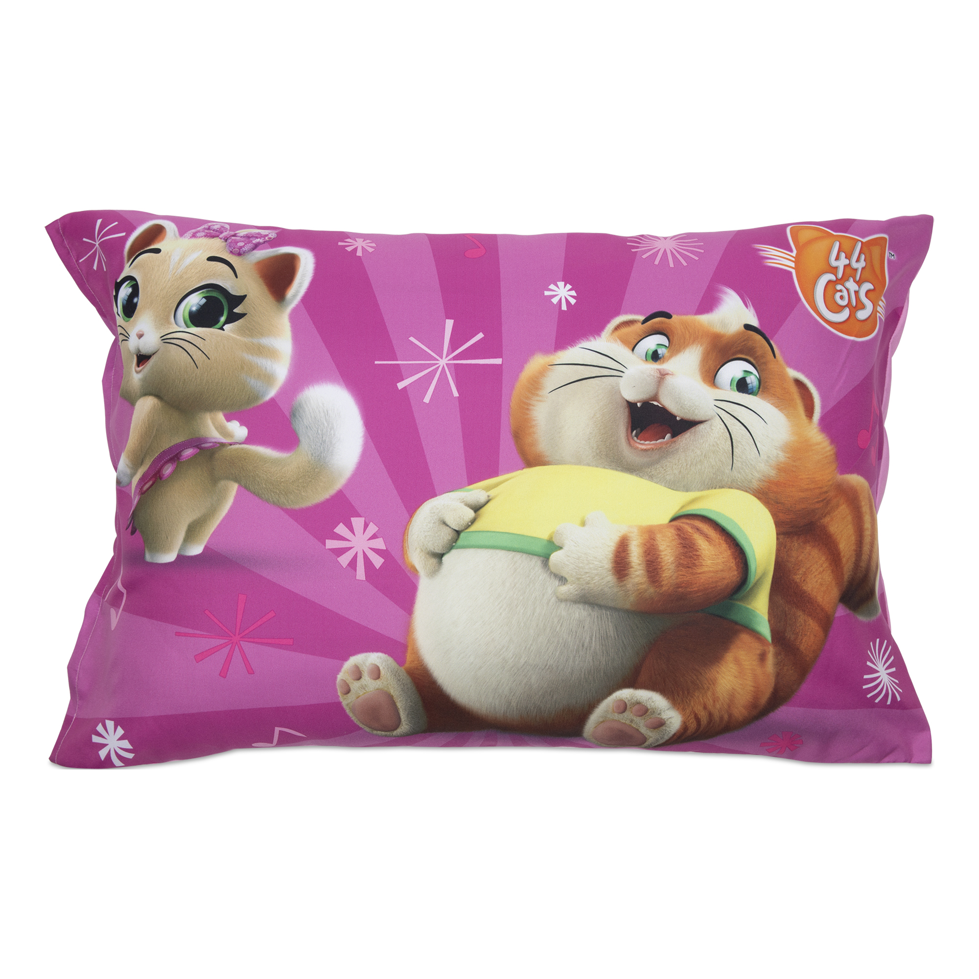 Your little one will have rockin’ dreams of musical adventures with this 44 Cats 4-piece toddler bedding set. The pink and white design featuring the musical 44 Cats characters Lampo, Milady, Pilou and Polpetta from the hit TV series is sure to excite your child and make a versatile addition to any bedroom decor. This playful 4-piece set includes a bedspread and standard size pillow case as well as a flat and fitted sheet. Fits a standard crib/toddler mattress. The comforter and pillowcase is reversible so you can flip them over and reveal a different fun design. Crafted for comfort, this bedding is made from high quality, super soft 100% Polyester that keeps kids cozy night after night. This bedding set is machine washable and designed to last without worrying about the color fading, making it a great choice for any child’s room.• 44 Cats "Cats Rock" 4-Piece Toddler Bed Set, featuring the musical 44 Cats characters Lampo, Milady, Pilou and Polpetta from the hit TV series is sure to delight young fans and inspire dreams of fun and playful adventures • Fun and colorful design: Pink and white design featuring the beloved 44 Cats gang is sure to excite your child and make a versatile addition to any bedroom decor • 4-Piece Toddler Bedding Set includes: Bedspread 58" x 42", Fitted Sheet 28" x 52", Flat Sheet 60" x 45", Pillow Case 20" x 28". Fits a standard crib/toddler mattress • Two Designs in One Set: This set features a fun reversible comforter and reversible pillowcase so when it’s time for a new look, simply flip them over to reveal a different colorful Peppa Pig design • Soft & Cozy Bedding: Crafted for comfort from high quality, super soft 100% Polyester keeps kids cozy night after night • Easy Care: This bedding set is machine washable and designed to last without worrying about the color fading, making it a great choice for any child’s room