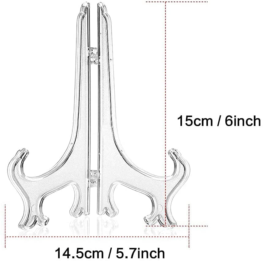 6 Inch Plastic Plate Easel Easel Plate Holder For Pictures Home Wedding Decoration, 12 Pieces (Clear)