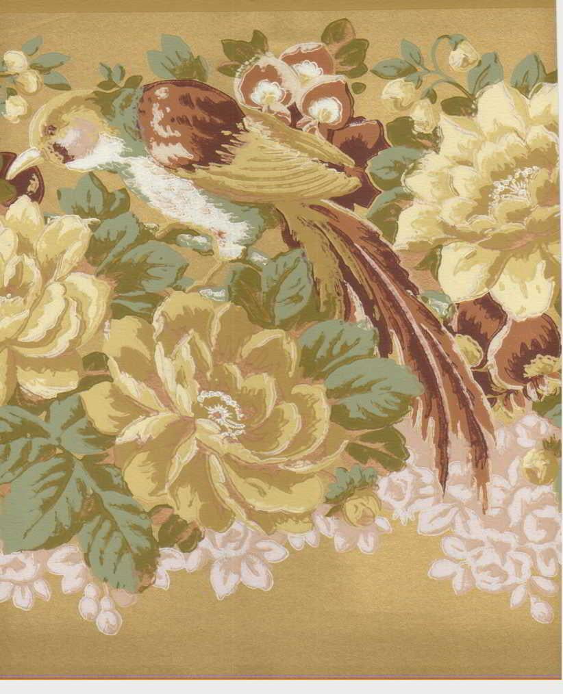 elegant floral with birds wallpaper border 46780Book Name : Brewster Pattern # : 46780 Border Width : 10.25 inches wide by 15 feet long Design Repeat : 20.5 inch pattern repeat Prepasted : Yes Background is glossy gold color, not visible in image.