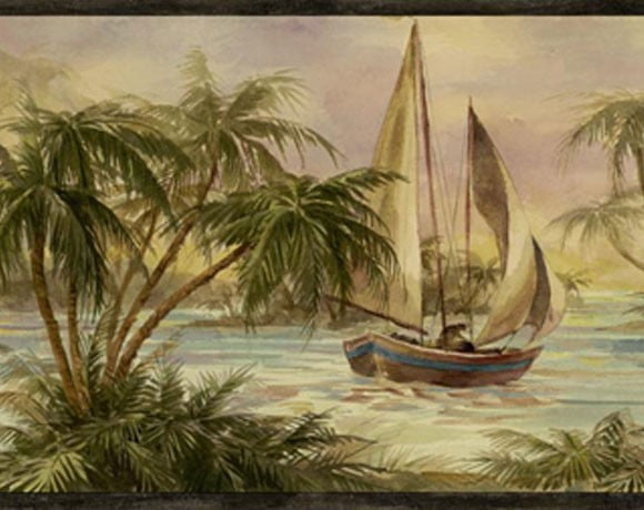 879597 Palm Trees Sailboats Wallpaper Border Black HV6002b