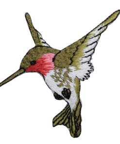 Large – Hummingbird – Facing LEFT – Ruby Red Throat – Iron on Embroidered Applique Patch