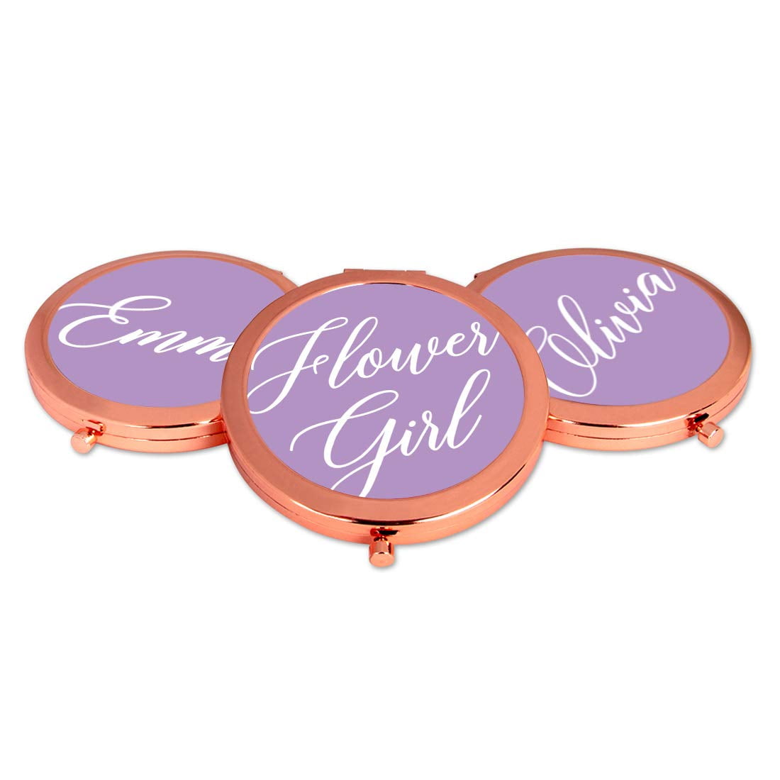 INCLUDES. 1 individual high quality 2.75 inch round compact mirror with elegant push button open. Both sides of compact have a mirror. One mirror is normal, and the other is 5x magnification. MATERIAL. Andaz Press compact mirrors are made of metal and are perfect for party favors. DESIGN. Our high quality artwork design is printed on front of metal compact mirror. PERFECT to give as a gift for bridesmaids, maid of honor, matron of honor, mother, sister, relatives, friend or any bachelorette party, bridal party, birthdays, Mother’s day, Christmas, Valentine’s day favors, family, friends, teachers, nurses, doctors, boss, coworkers, or just becauseAndaz Press Rose Gold Compact Mirror Flower Girl Wedding Gift, Lavender, 1-Pack