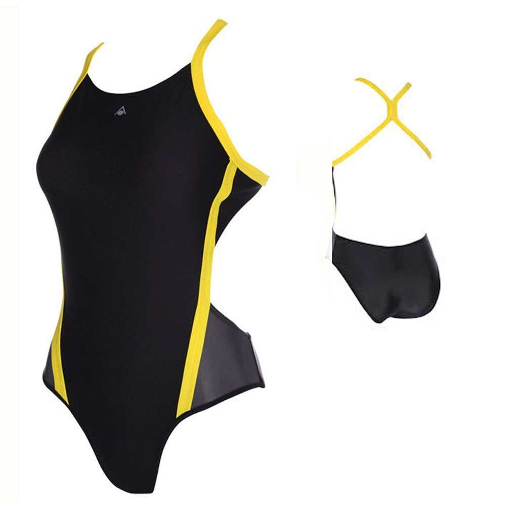 Aqua Sphere Cindy Open Back Ladies Swimsuit Black/Bright Yellow,36