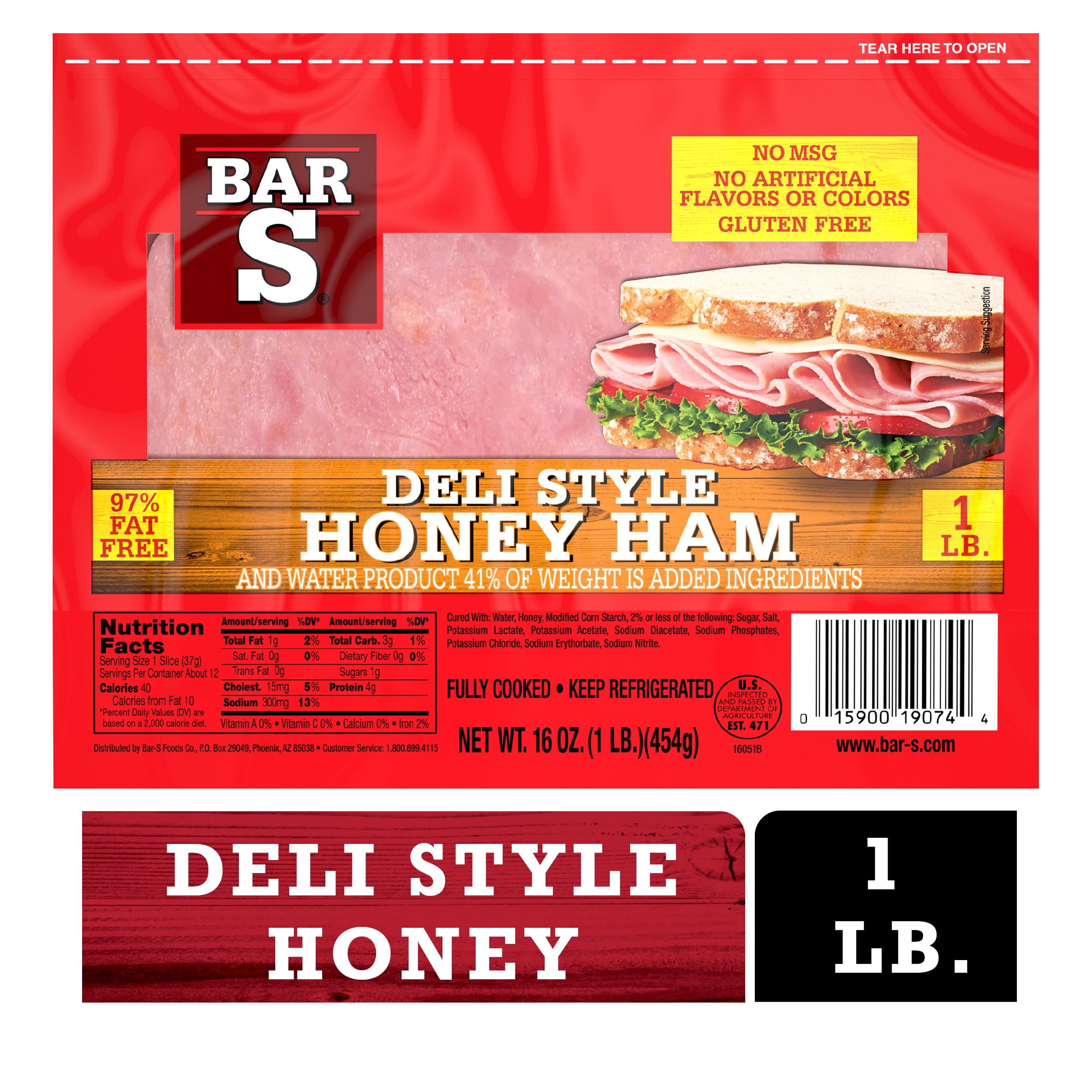 Bar S 97% Fat-Free Deli Style Honey Ham, 16 Oz