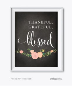 Thankful, Grateful, Blessed Chalkboard Floral Fall Thanksgiving Party Signs