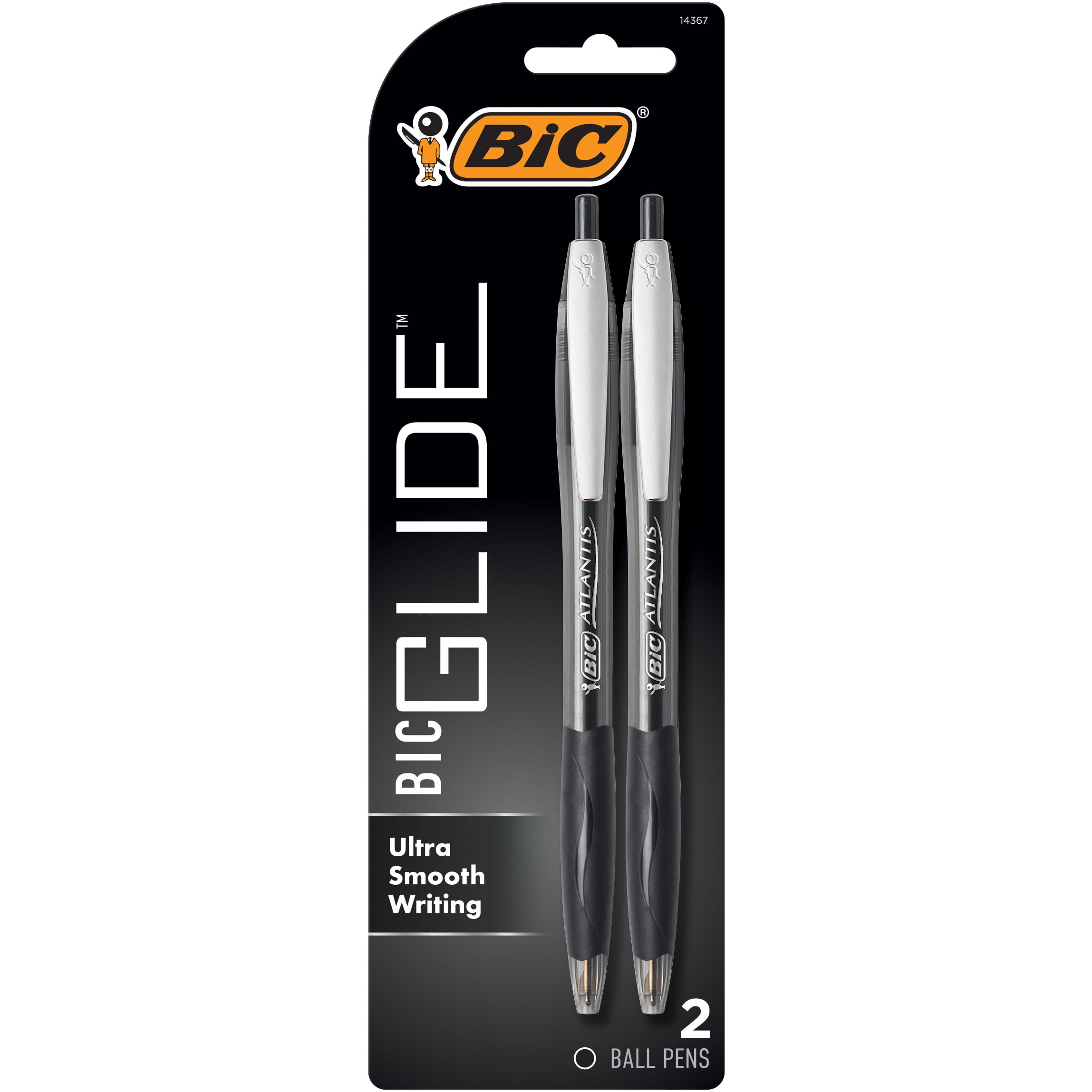 BIC Glide Original Retractable Ball Pens, Medium Point (1.0 mm), Black, 2-Count