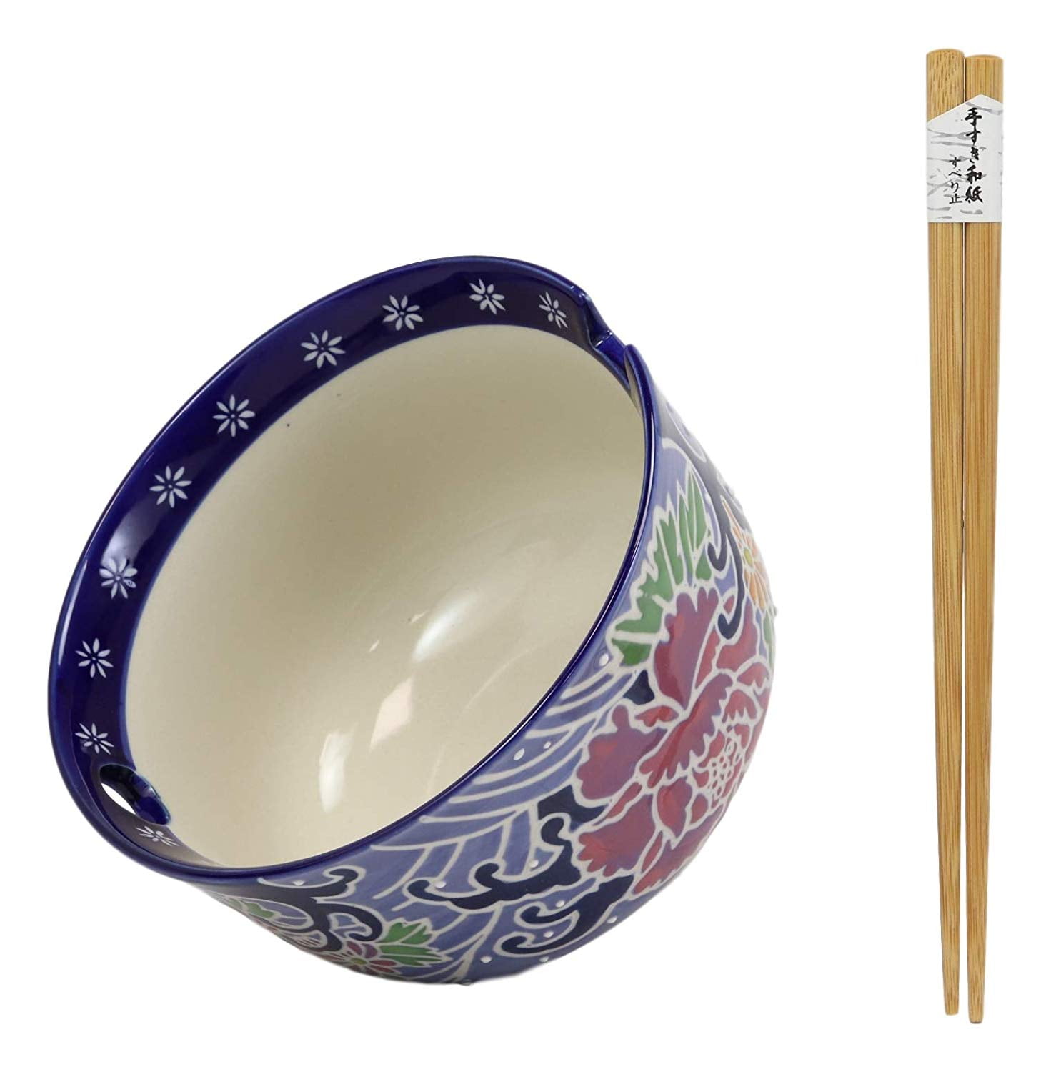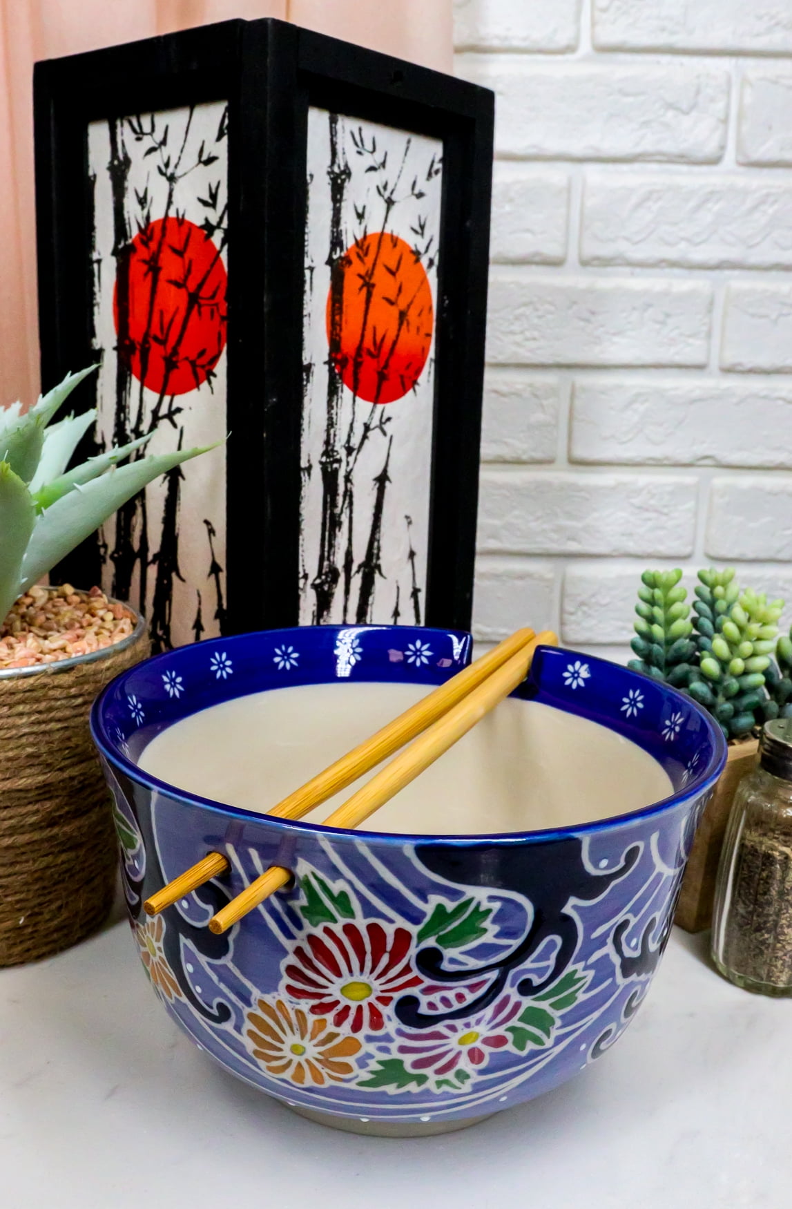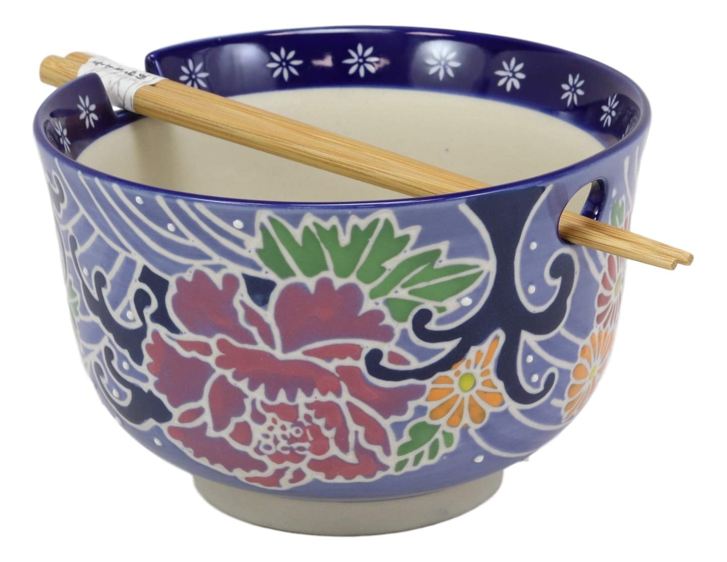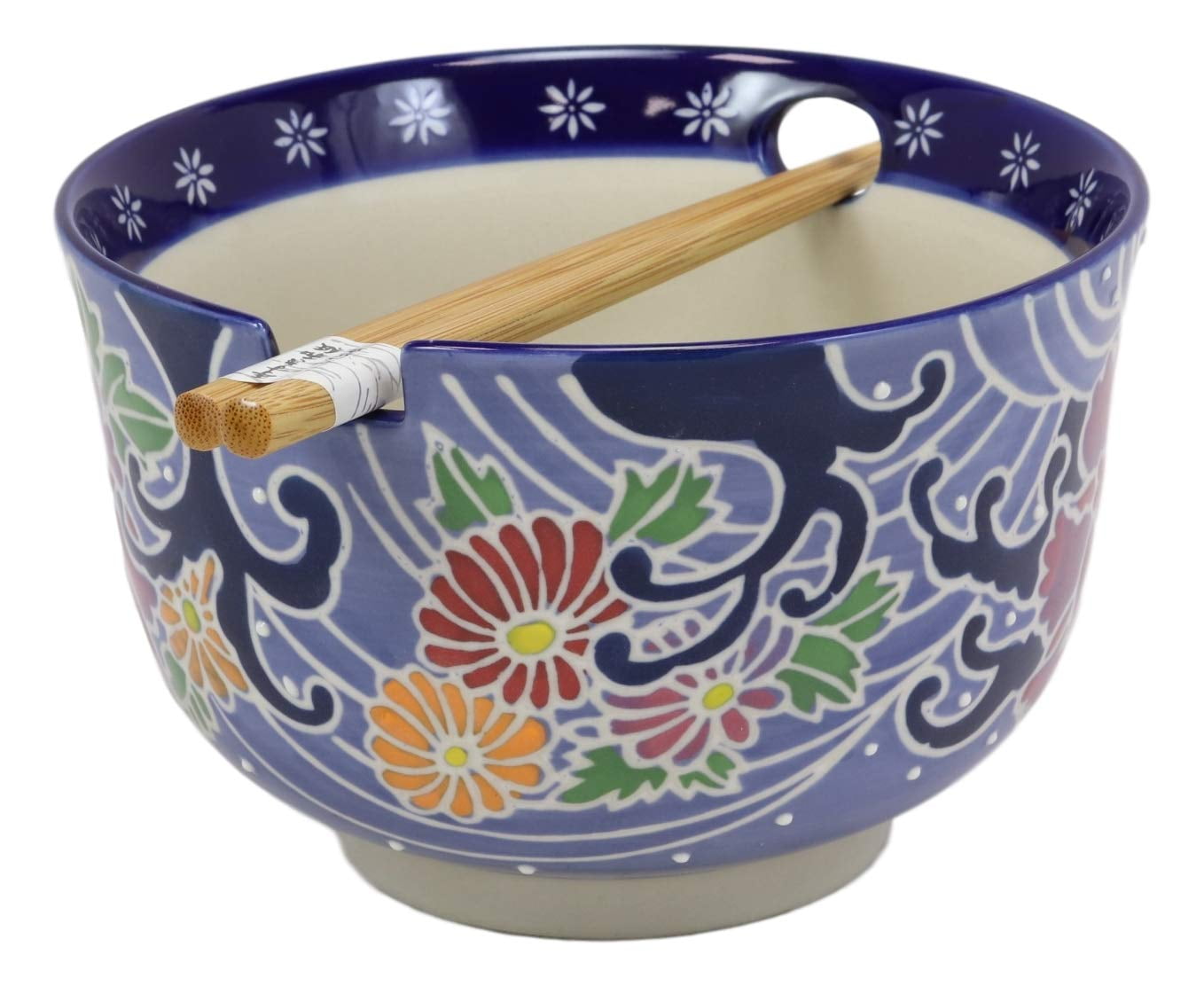 • This is an Ebros Gift exclusive collection. It comes with our Ebros Gift Satisfaction Guarantee when sold by Ebros Gift.Ebros Blue Colorful Floral Breeze Ramen Udon Noodles Large 6.25" Diameter Soup Bowl With Built In Rest and Bamboo Chopsticks Set for Rice Pasta Salad