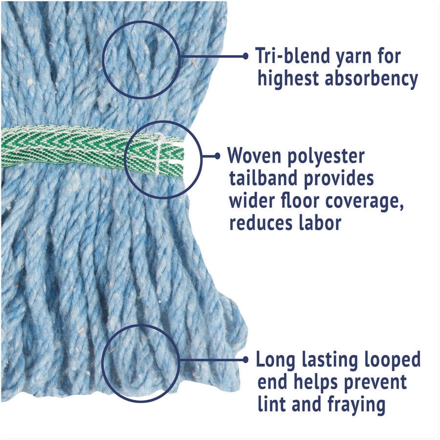 The Boardwalk Blue Medium Cotton/Synthetic Super Loop Wet Mop Head is made with premium-quality four-ply yarn. The Boardwalk mop head absorbs up to seven times its own weight. It can be used with clamp- or spring grip-style handles (sold separately).Boardwalk Blue Medium Cotton/Synthetic Super Loop Wet Mop Head:Premium-quality 4-ply cotton/synthetic yarn mop head for high-volume useAbsorbs up to 7 times its own weightHeavy-duty 5" vinyl headbandLaunder in mesh bagHead type: wet mopApplication: floor maintenanceMop head style: looped endBlue mop head size: mediumCan be used with clamp- or spring grip-style handles (sold separately)Model Number: BWK502BLEAModel Number: