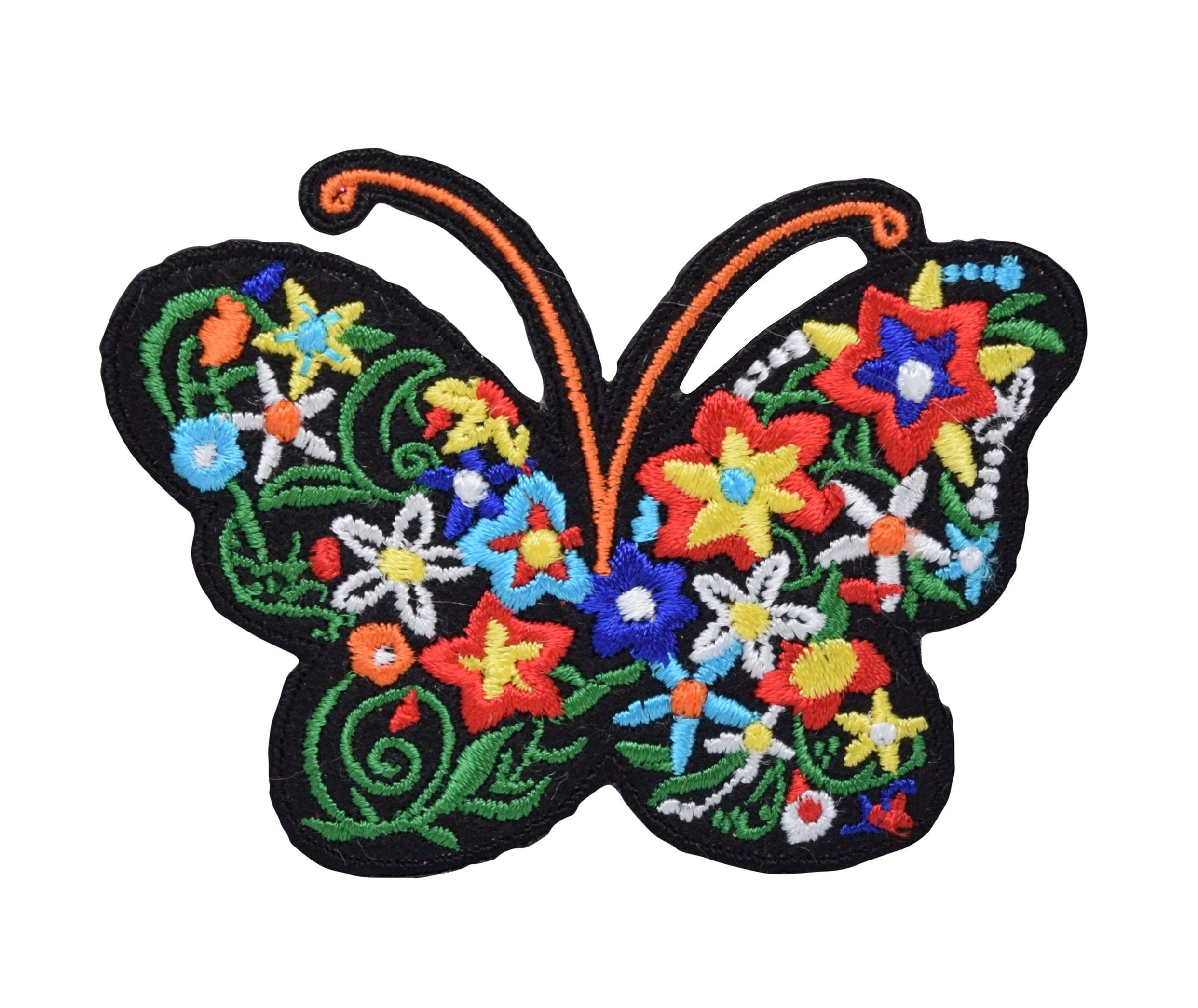 Butterfly – Silhouette with Flowers – Floral – Iron on Applique/Embroidered Patch