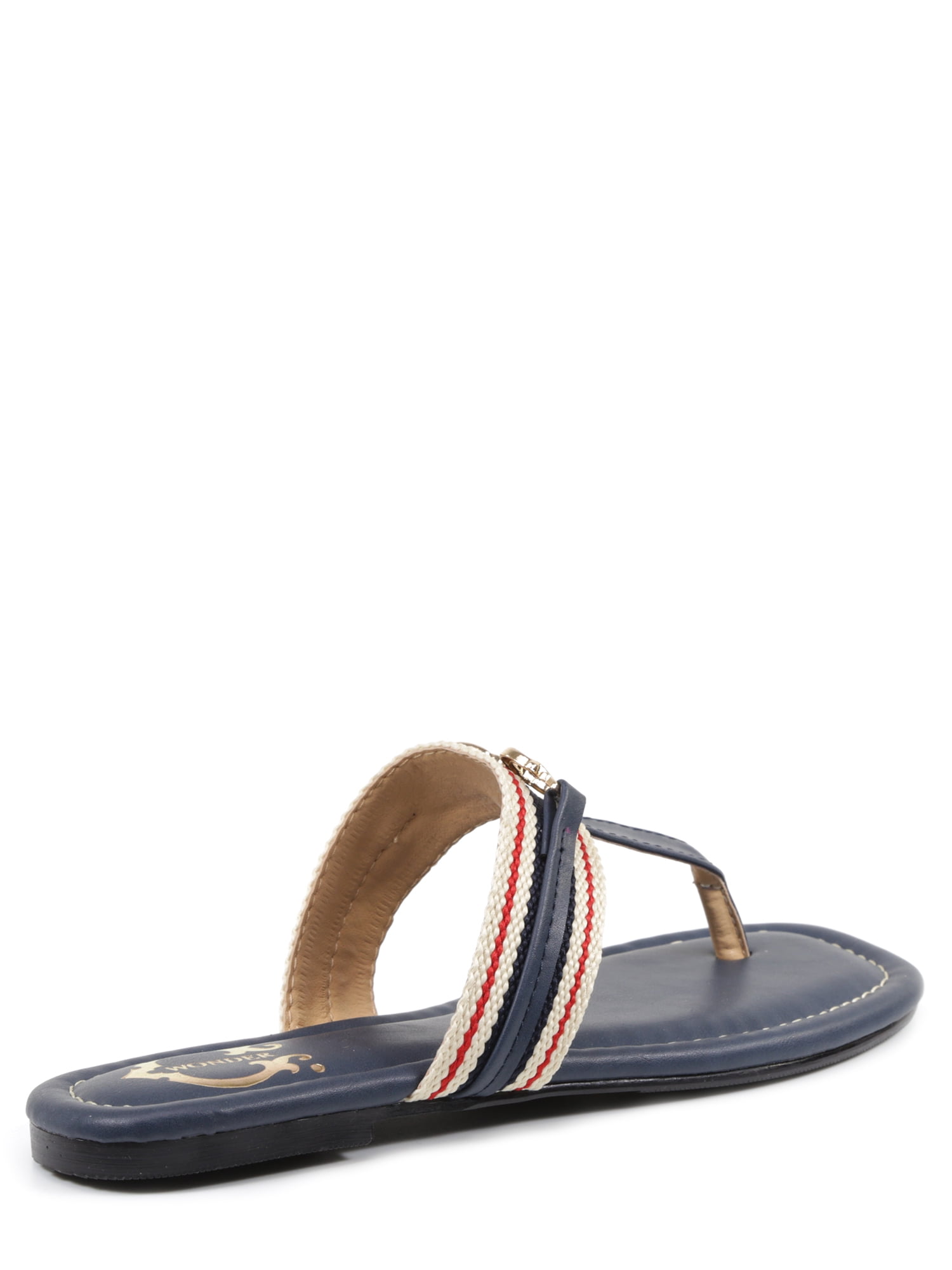 - Comfort features: T-strap vamp with contrast fabric detail; lightly cushioned footbed; signature C. Wonder gold-tone medallion embellishment; flexible design for comfort