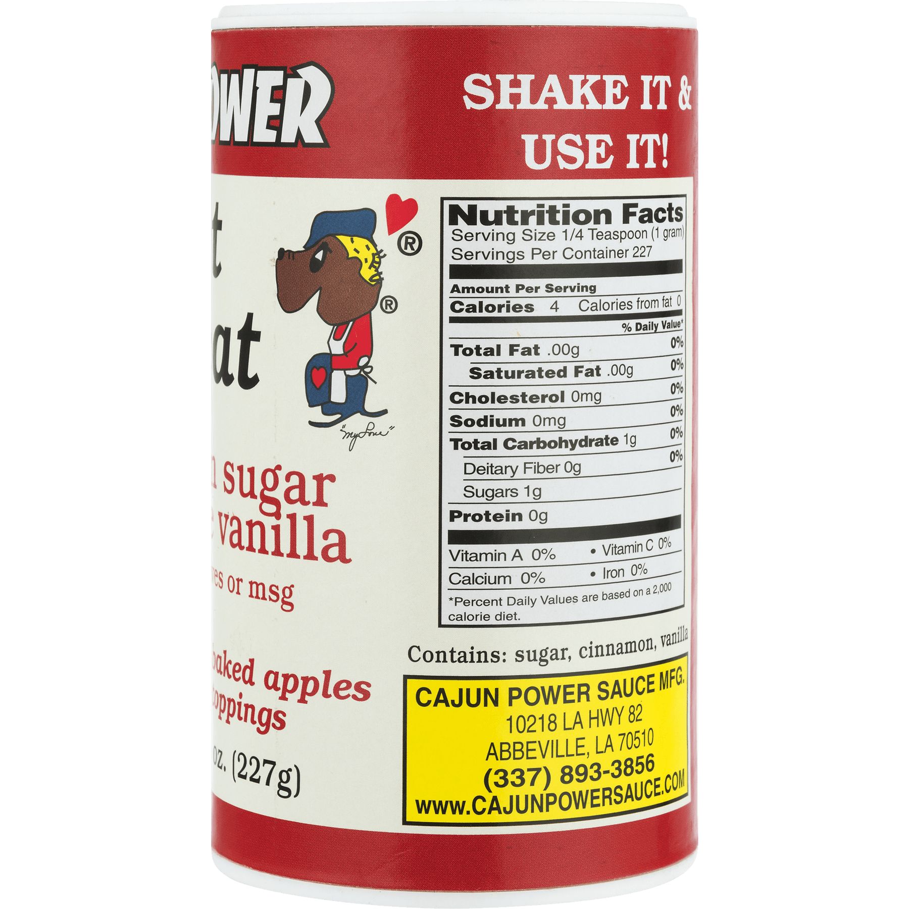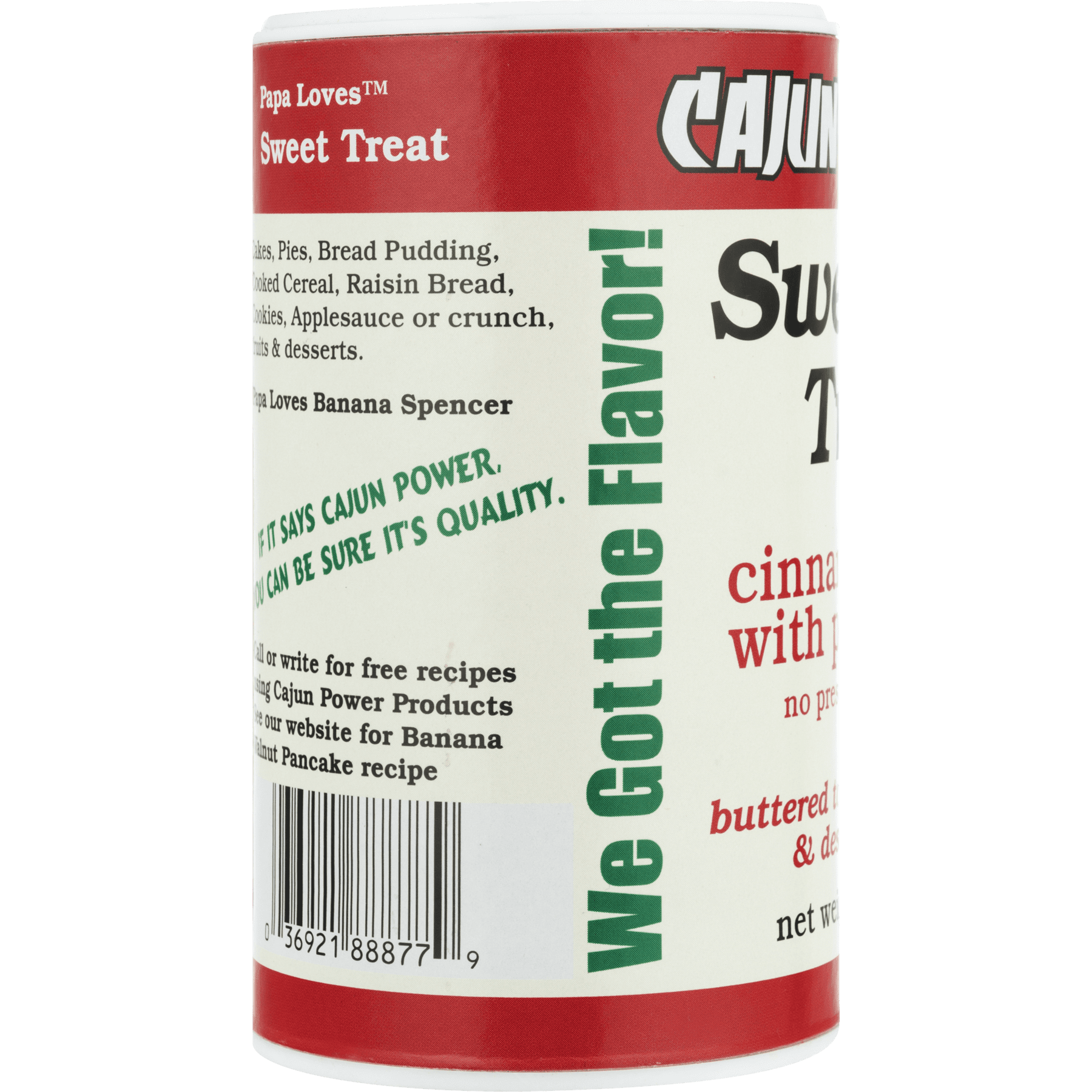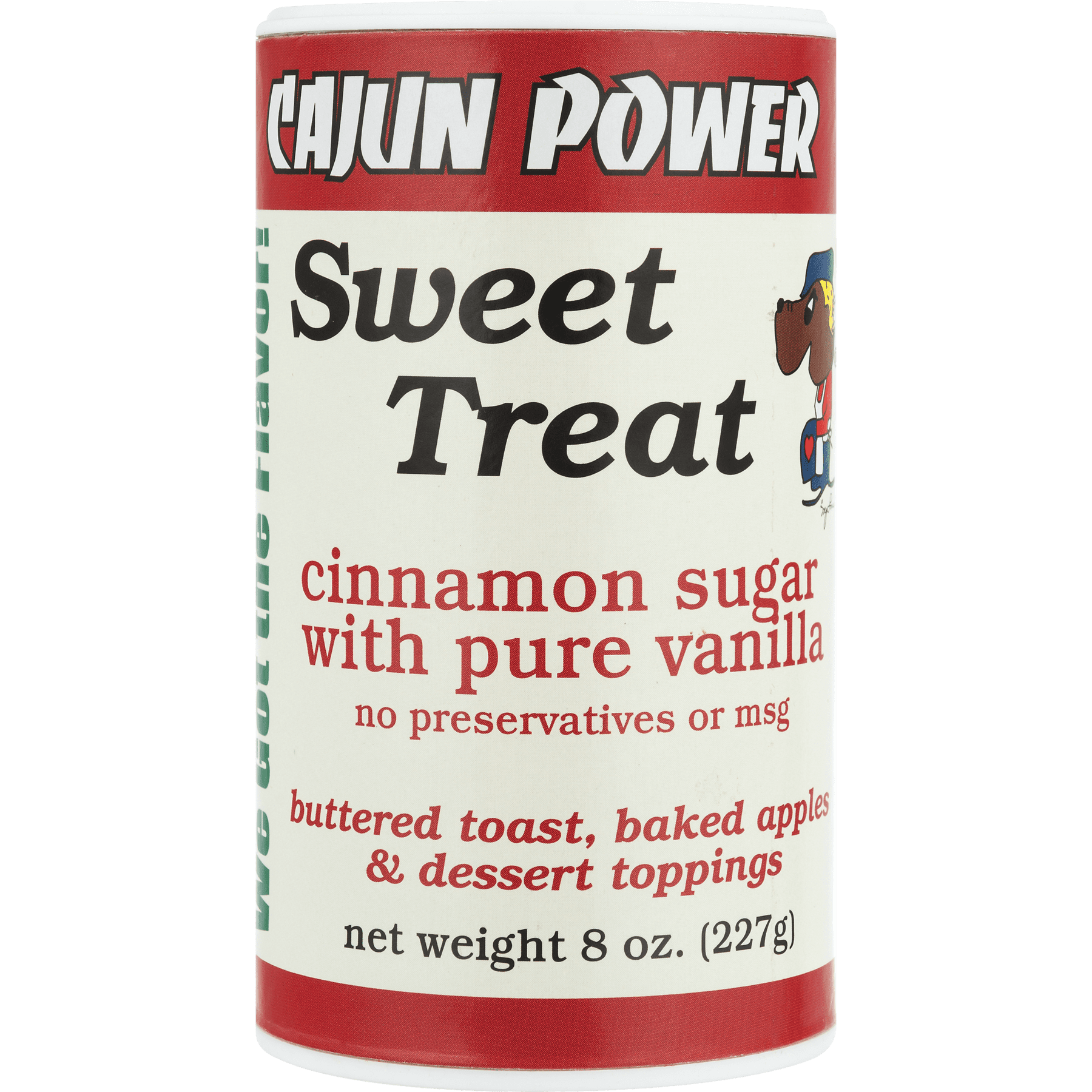 Cajun Power Sweet Treat Cinnamon Sugar With Pure Vanilla. This product has no preservatives or MSG. It has 0g saturated fat, 0g trans fat, 0mg cholesterol and 0mg sodium.