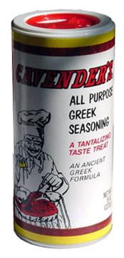 Cavenders All-Purpose Greek Seasoning – 3.25 oz.Cavenders seasoning is as distinctive in the foods of today as those prepared for the feasts of the ancient Greeks. A perfectly prepared blend of 13 ingredients this seasoning is excellent on steaks chops roasts meat loaf chicken fish turkey hamburgers seafood and wild game. In addition it compliments the taste of all cooked vegetables gravies soups stews casseroles eggs poultry dressing and vegetable juices. Add versatility to your creative cooking; sprinkle Cavenders into your next culinary favorite. No other spices necessary.Ingredients: salt black pepper corn starch garlic monosodium glutamate oregano flavor base seasoning (hydrolyzed corn soy protein sugar onion powder spice extracts) parsley and five other spices.Product of USA