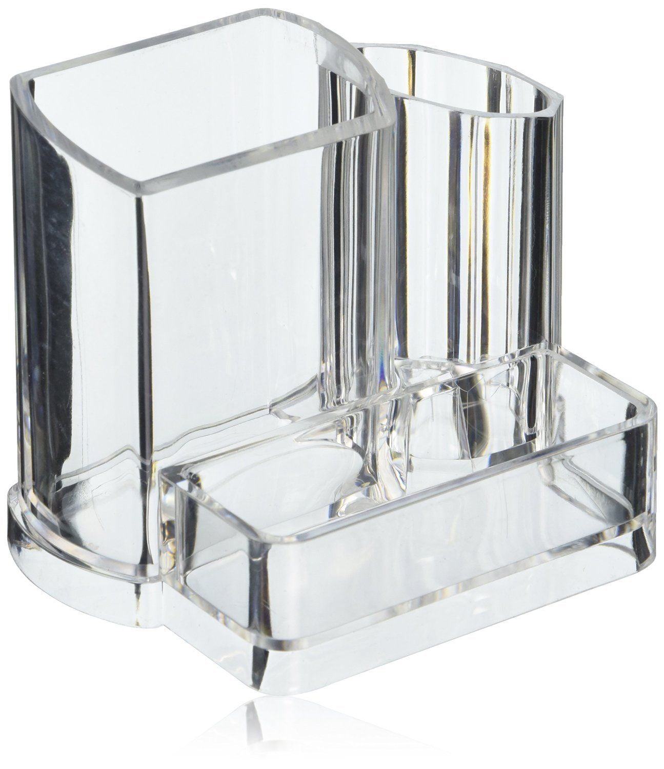 Clear Acrylic Makeup Brush and Cosmetic Holder with 3 Compartments