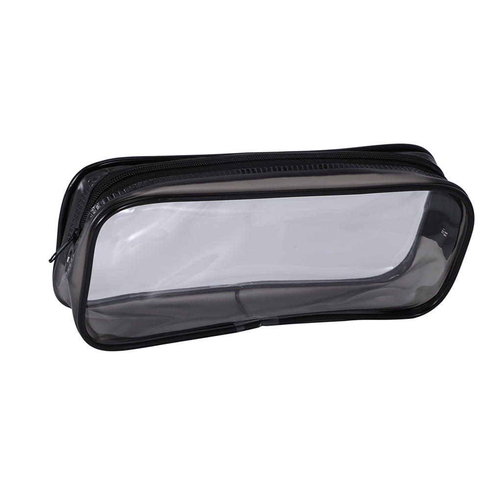 Clear Pencil Case PVC Zipper Pen Bag Portable School Student Stationery Storage Pouch, Black