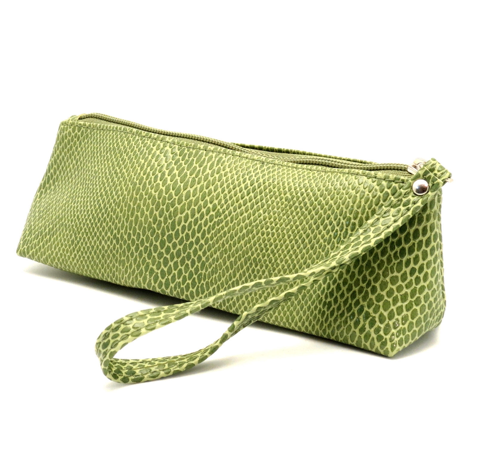 Clinique Faux Green Leather Cosmetic Makeup Travel Bag