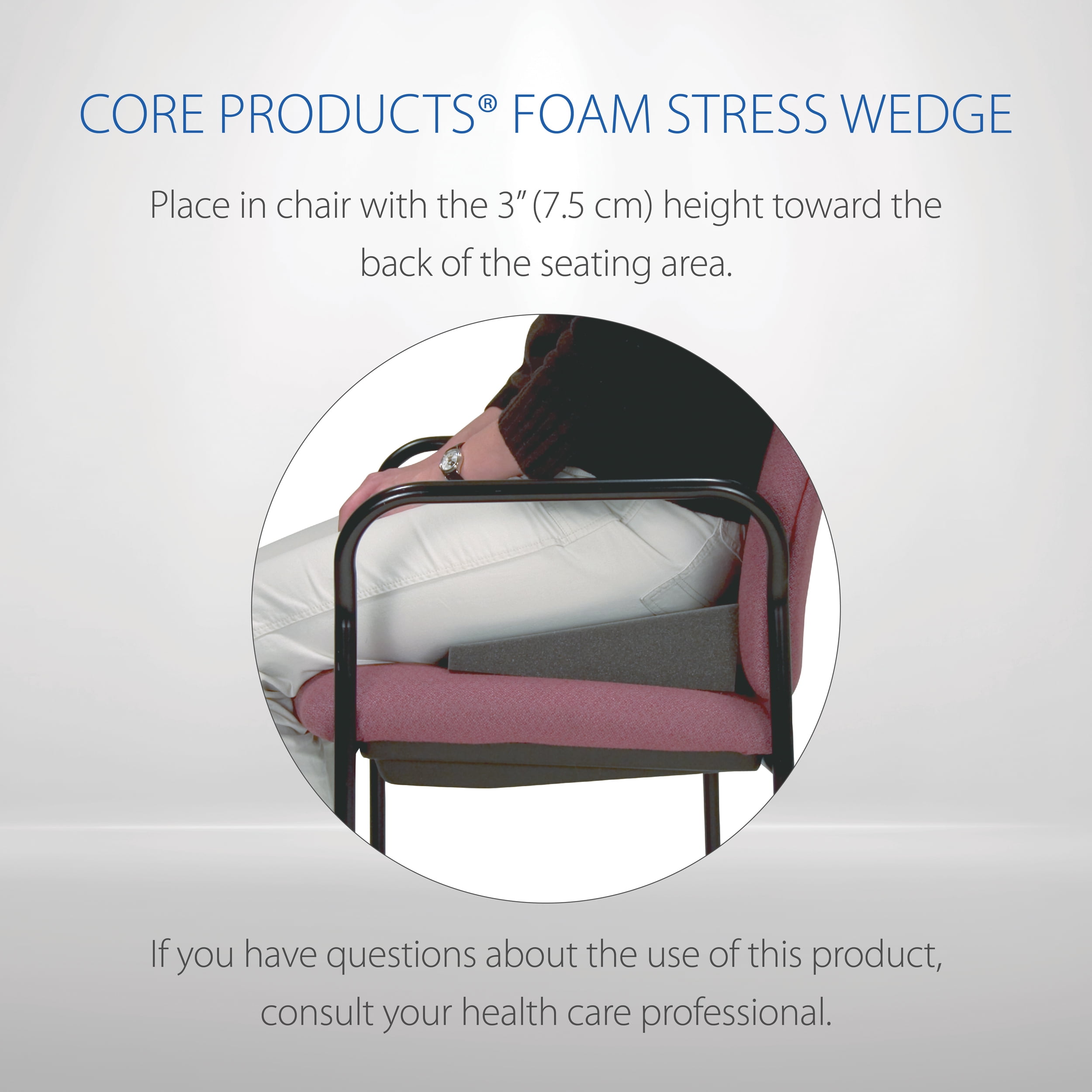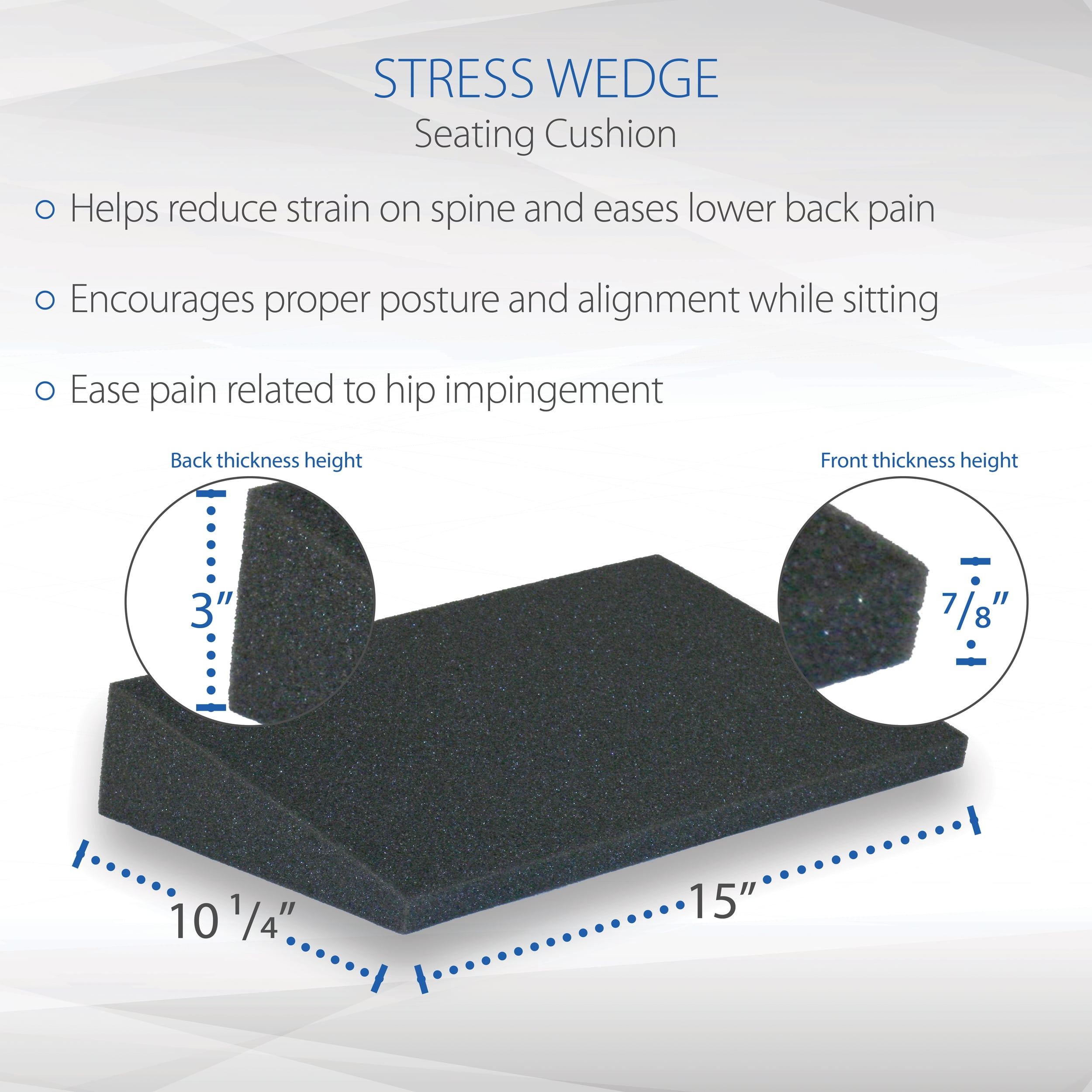 The foam Stress Wedge provides an economical option to help improve posture and ease lower back and/or hip pain while sitting. The gentle incline helps restore and maintain correct ergonomic seating by increasing the angle of the hips, helping increase core stability.