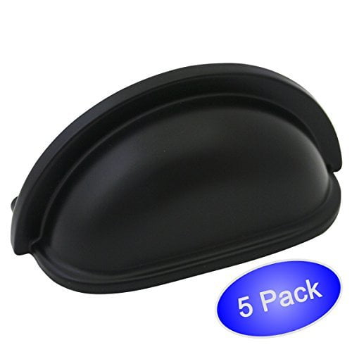 Cosmas 4310FB Flat Black Cabinet Hardware Bin Cup Drawer Handle Pull – 3′ Inch (76mm) Hole Centers – 5 Pack