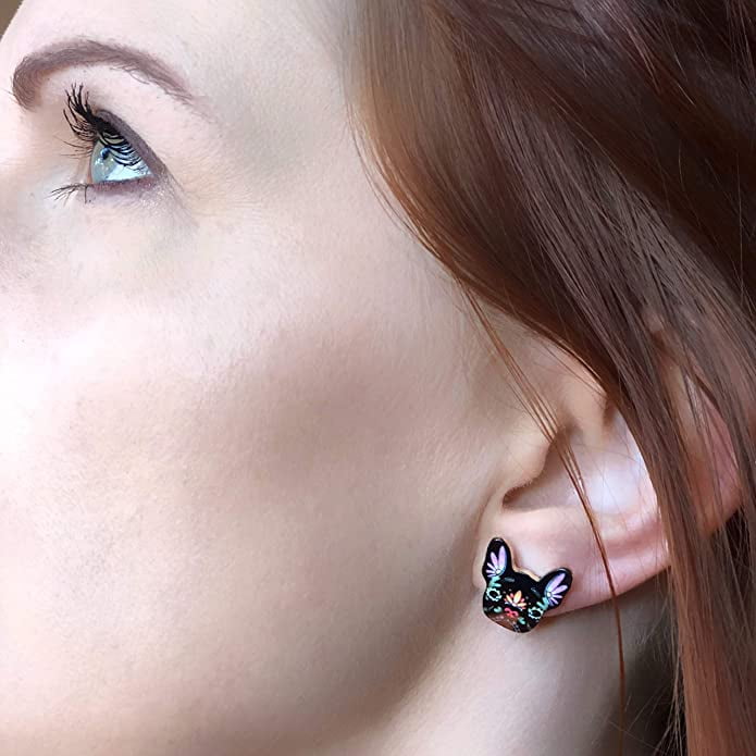 French Bulldog Earrings: Dog Stud Earrings for Women and Girls Colorful Cartoon Print (Black)