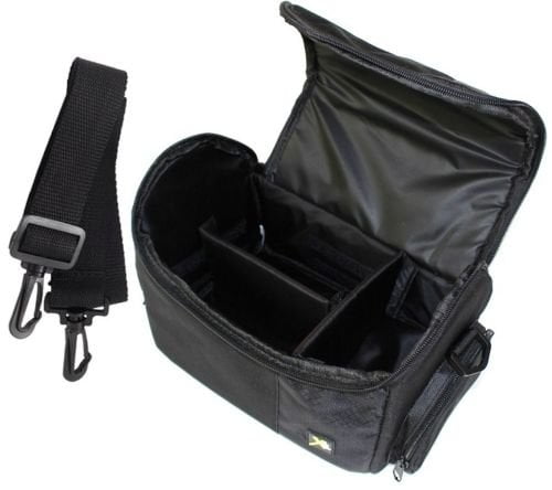 Sleek design Sturdy construction 1pc divider for custom fit Removable shoulder strap Carrying handle 2 side pockets Webbed side & back pocket Inside dimension : 9 1/2?(W) X 6?(D) X 7?(H) Outside dimension : 12 1/2?(W) X 6 1/2?(D) X 7 1/4"(H) Lightweight & sleek designDeluxe Large Camera Carrying Bag Case For Nikon D5000 D5100 D5200 D5300 D5500
